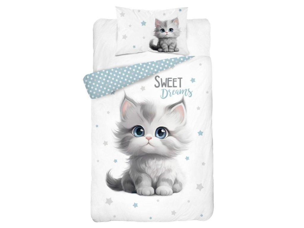 DETEXPOL Povlečení do postýlky Kotě sweet dreams 100/135, 40/60 Dětské bavlněné povlečení do postýlky, motiv peřiny je z každé strany jiný, zapínání na zip, praní na 40°C Materiál: 100% Bavlna Rozměr: 1x 100/135, 1x 40/60 cmDoplňkové parametry