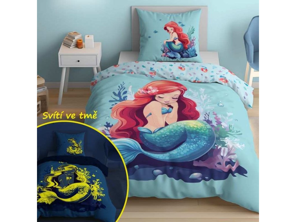 DETEXPOL Povlečení Mořská víla svítící Bavlna, 140/200, 70/80 cm