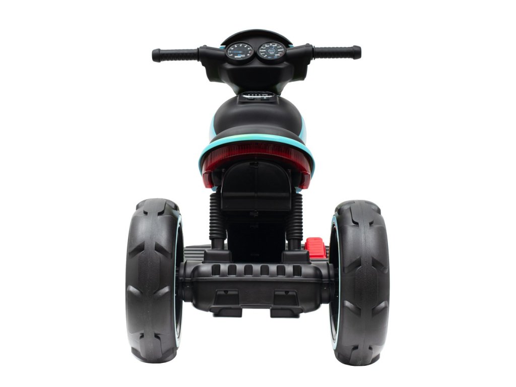 Motocykl se ovládá sešlápnutí nožního pedálu na stupátku a po jeho uvolnění, motocykl zabrzdí. Jízdu vpřed i vzad ovládáte přepínáním tlačítka pro změnu směru jízdy. O náhon na zadní kola se stará dvojice silných 6V/24W motorů poháněná baterií 6V/7Ah.
