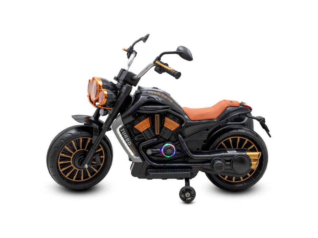 - Hudba a světla – motorka má USB, MP3 a Bluetooth připojení, takže si děti mohou pustit oblíbené písničky.