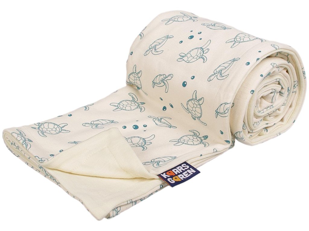 Oboustranná dětská deka z bio-bavlny a merino vlny. Vrchní strana je ze 100% bio-bavlny s motivem želviček, podšívka je z úpletu ze 100% merino vlny. Gramáž merina je 200g/m2, 100% MERINO extra 18,5 µm. Deka má velikost cca 70 x 100 cm. Praní na 30 °C. Nepoužívat aviváž! Česká výroba.
