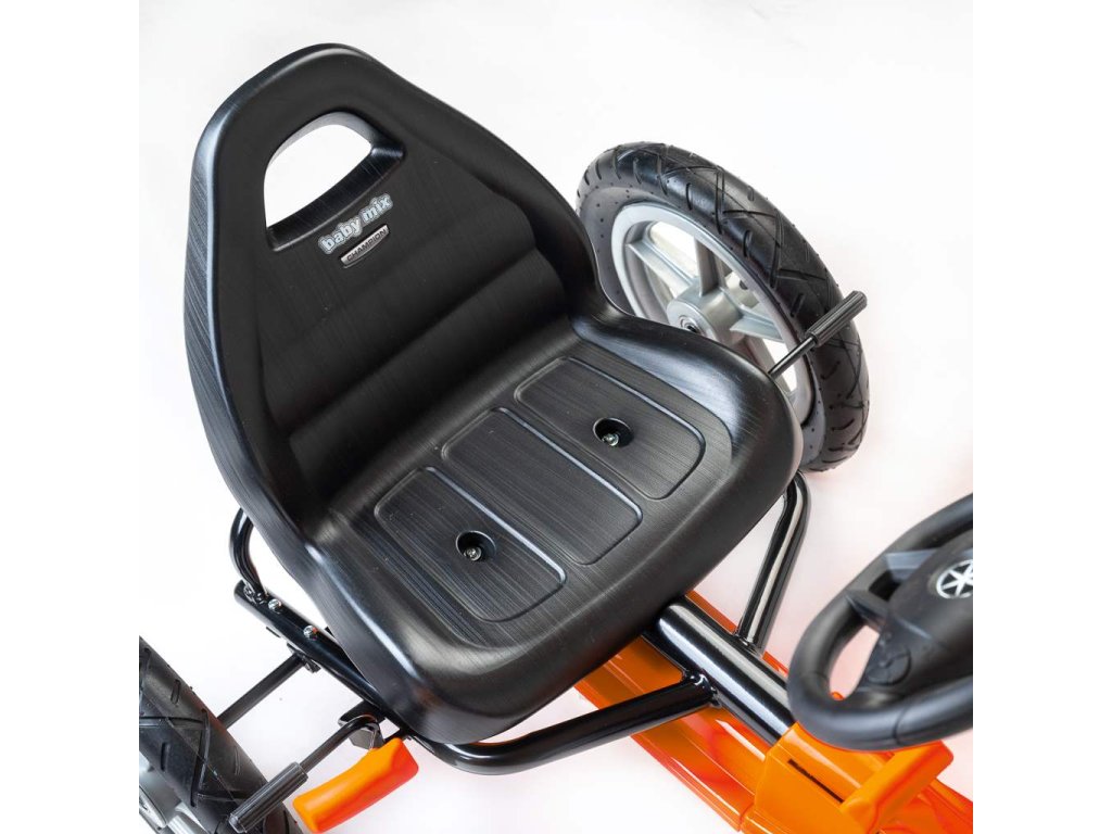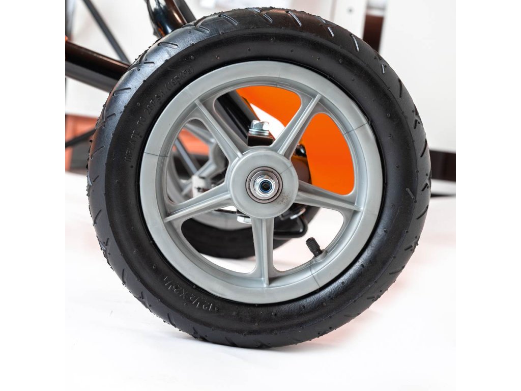 Velké nafukovací pneumatiky zajistí komfort a pohodlí při jízdě na jakémkoli povrchu. Motokára má zabudovaný řetězový pohon s možností odpojení pohonu - funkce volnoběžky a ruční brzdu na zadní nápravě.