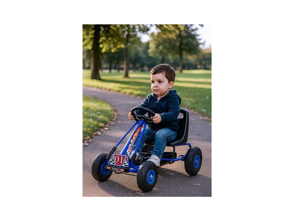 Velké nafukovací pneumatiky zajistí komfort a pohodlí při jízdě na jakémkoli povrchu. Motokára má zabudovaný řetězový pohon s možností odpojení pohonu - funkce volnoběžky a ruční brzdu na zadní nápravě.