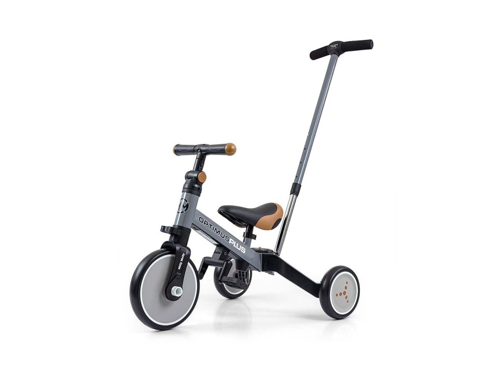 Dětská tříkolka 4v1 Milly Mally Optimus Plus s vodící tyčí grey