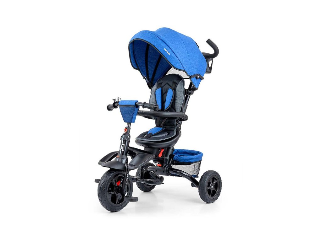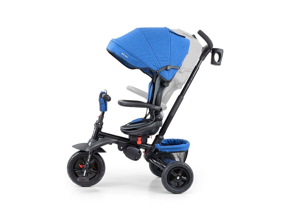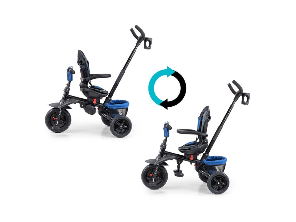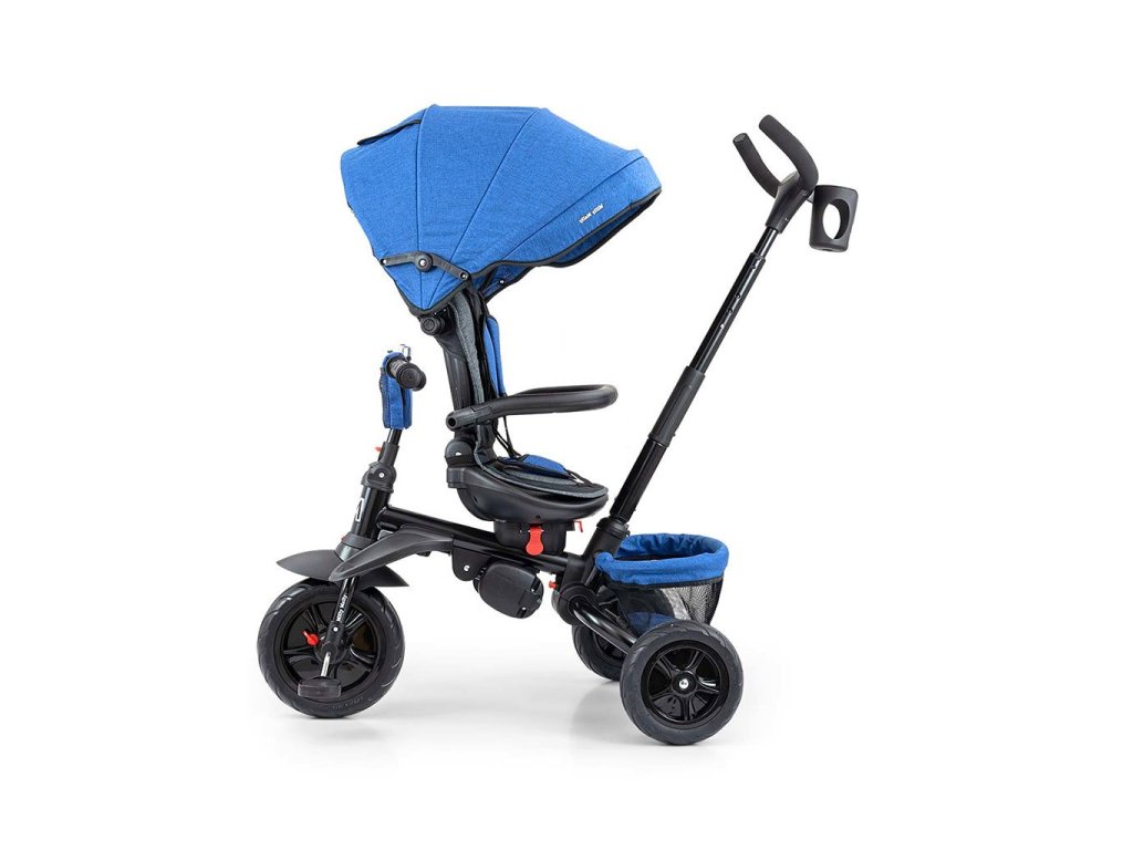 Je vyrobena z kvalitních a odolných materiálů. Má moderní konstrukci, pohodlné a ergonomicky tvarované sedadlo, které je otočné o 360 stupňů, což umožní dítěti cestovat ve směru nebo proti směru jízdy. O pohodlí a bezpečí během jízdy se stará bariérka, tříbodové bezpečnostní pásy, pohodlné stupačky nebo gumová kola, které skvěle absorbují rázy a poskytují dobrou přilnavost. Tříkolku může ovládat jak dítě, tak i rodič pomocí nastavitelné rukojeti pro tlačení. Po odebrání vodící tyče, sklápěcí stříšky, která chrání před sluncem nebo ostatních komponent bude sloužit jako tříkolka. Tříkolku lze používat rovněž jako alternativu golfového kočárku. Pro uložení hraček nebo potřeb pro dítě je zde praktický úložný košík.
