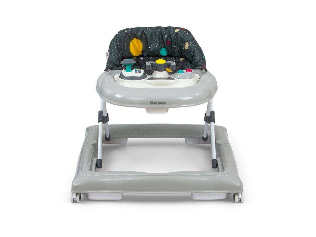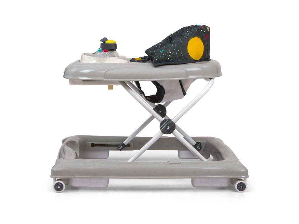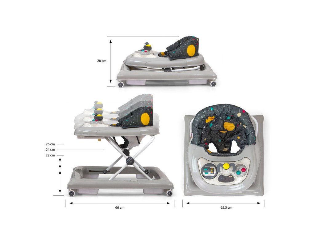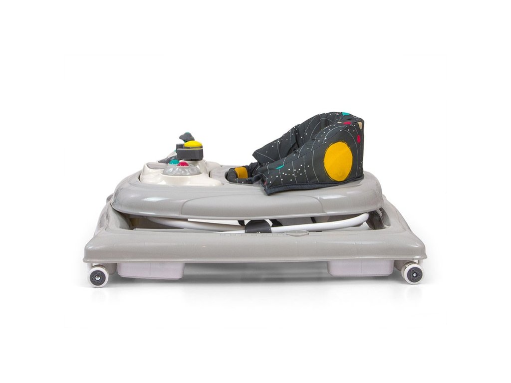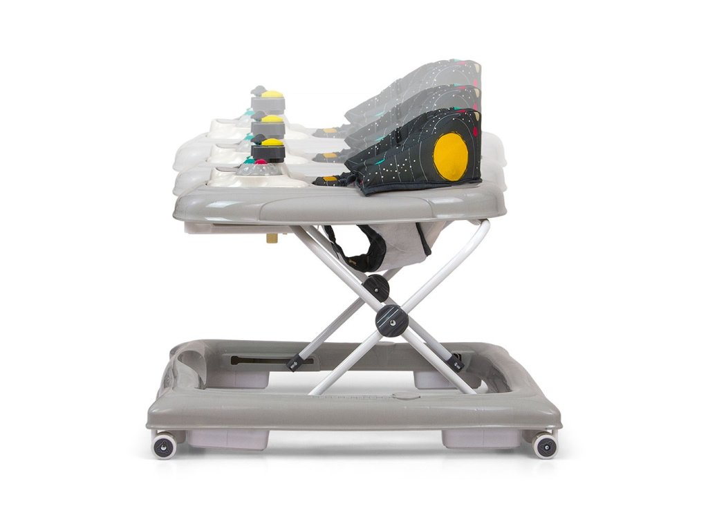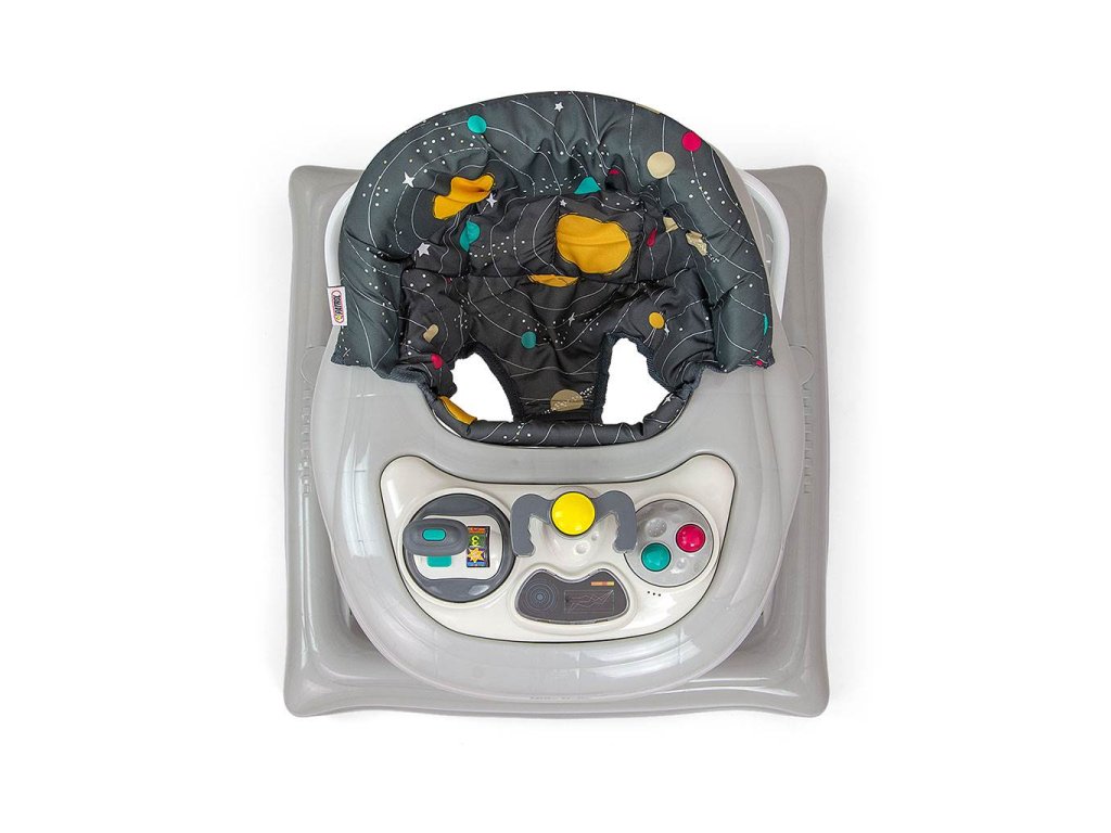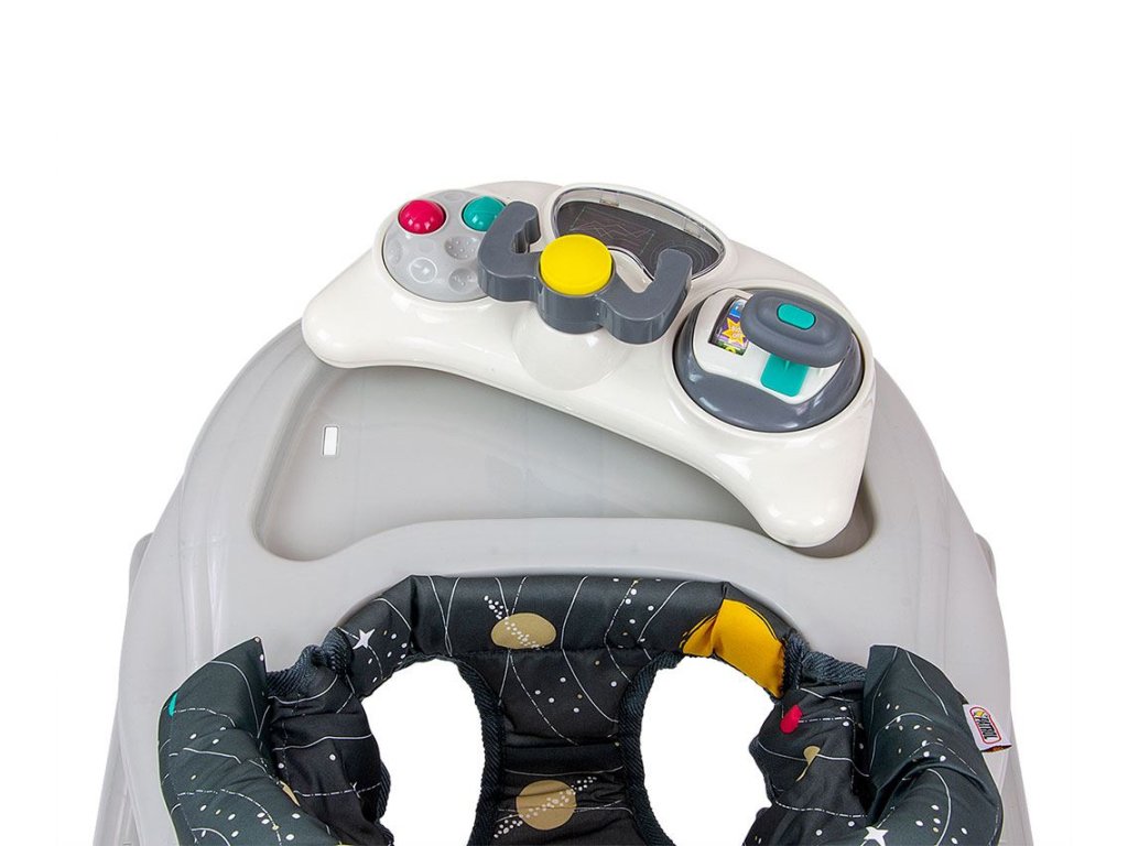 Výrobek má výukový panel, který obsahuje řadu překvapení čekajících na malé průzkumníky: světýlka, pískání, melodie, chrastítko, tlačítka a další pohyblivé prvky. Po sejmutí panelu z podnosu chodítka poslouží jako samostatná hračka, například jako společník na cesty, a deska poslouží jako hrací stolek.