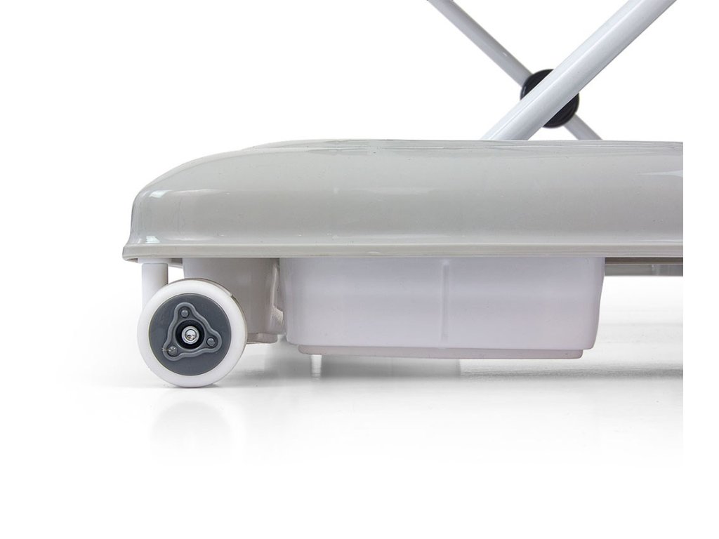 Čtyři kvalitní otočná kolečka, která nepoškrábou povrch, po kterém se pohybují, zajistí volnost pohybu a osm gumových zarážek ochrání dítě před sklouznutím ze schodů nebo jiných překážek.