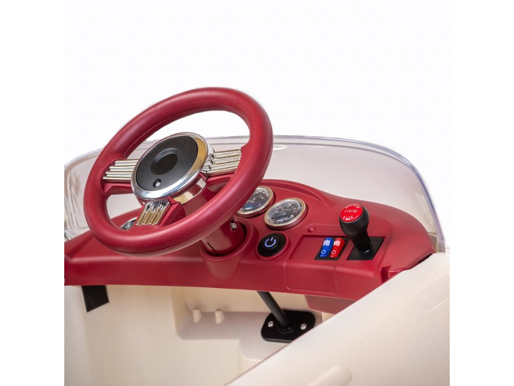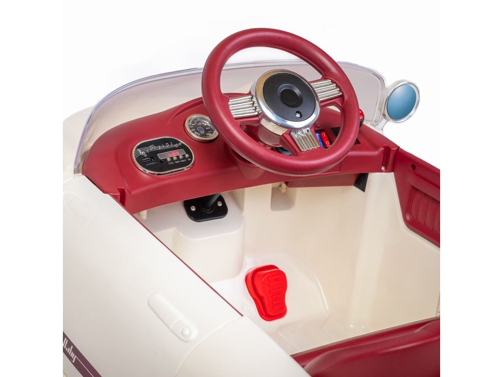 Dětské elektrické auto Retro Pearl White nejenže přináší radost a zábavu, ale také rozvíjí fantazii a motorické dovednosti dětí. Díky předem nahrávané hudbě a pohádkám dodává této dobrodružné cestě další rozměr kouzla.
