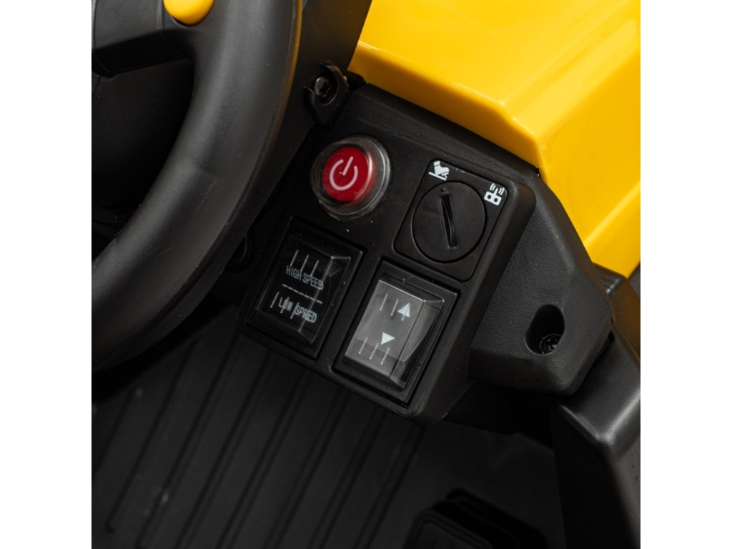 Elektrický traktor CAT má věrně zpracovaný vzhled stavebního stroje, což podporuje dětskou fantazii. Je vyroben z odolných a bezpečných materiálů, které splňují nejvyšší standardy kvality.