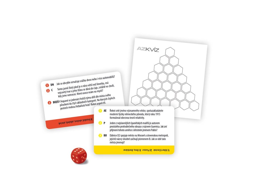 Všechny odpovědi na dětské otázky nejspíš nezná nikdo. Ale na kolik otázek znají odpověď děti? To se uvidí při AZ kvízu junior. Tuhle kompaktní sadu 360 otázek si navíc můžete vzít i na cesty a změřit tak síly, kdykoli a kdekoli budete mít náladu. Princip hry je stejný jako u její TV obdoby, propojit pomocí správných odpovědí svou barvou tři strany herního plánu. Hra je určená školákům od 10 let pro které bude zábavným a hravým opakováním učiva. Karty můžete použít samostatně jako cestovní hru nebo jako rozšíření velké hry AZ kvíz junior. Balení obsahuje: 60 oboustranných karet s 360 otázkami70 záznamových tabulek s herním plánem1 bodovou hrací kostku Hlavní vlastnosti: 360 otázek, 70 tabulek s herním plánem, 1 kostkacestovní hra Dokumentace:návod ke hře AZ kvíz junior na cesty (CZ)Doplňkové parametry