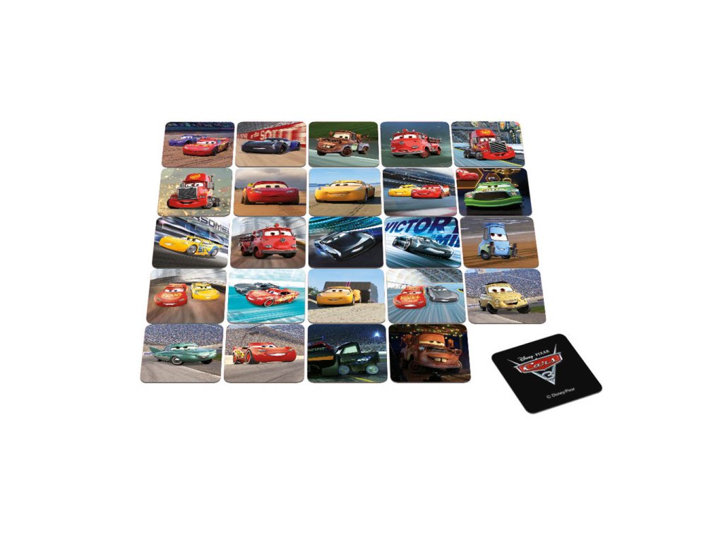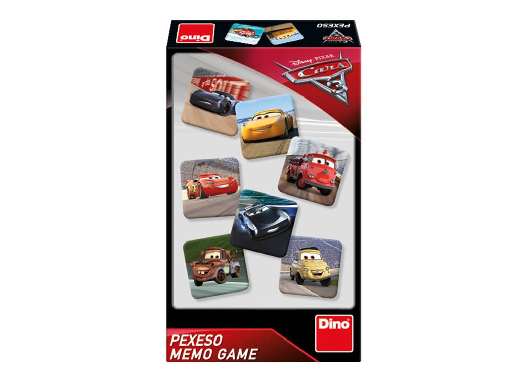 Blesk McQueen, Burák, Sally, Jackson Storm... Myslíte, že si všechna auta z oblíbené série Cars nejde zapamatovat? Vaše ratolesti Vás jistě vyvedou z omylu. Zvlášť poté, co si s novým autíčkovým pexesem promrskají i hrdiny třetího dílu. Hrací kartičky z pevného a zdravotně nezávadného kartonu navíc zaručeně vydrží i každodenní trénink. Paměť, pozornost i postřeh si při hře procvičí jak děti, tak dospělí.