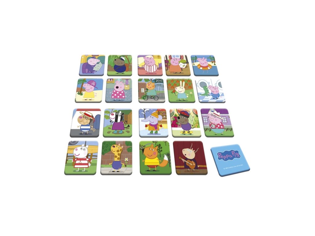 Kdo by neznal prasátko Peppa? Stále usměvavé prasátko se svou rodinou a přáteli je motivem tradiční hry, která procvičuje paměť, pozornost a postřeh a po generace baví děti. Hrací kartičky z pevného a zdravotně nezávadného kartonu navíc zaručeně vydrží i každodenní trénink. Zvítězí ten, kdo posbírá nejvíce shodných dvojic.
