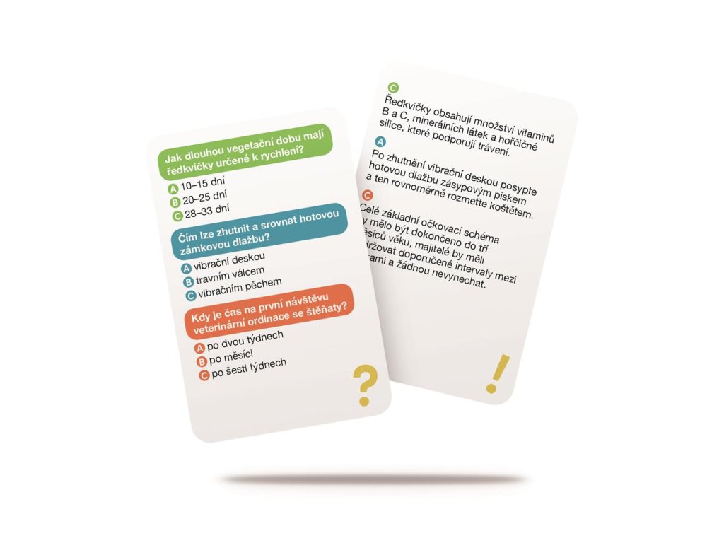 Proč Vám loni nevyrostly ředkvičky, jak vypadá tlustý pes a čím srovnat zámkovou dlažbu před domem? Zkuste najít odpovědi v zábavném kvízu Receptář prima nápadů. Na celkem 60 kartičkách najdete hned 180 otázek ze 3 oborů, kterými jsou zahrada, dílna a domácnost. Pozvěte kamarády a poměřte své síly na poli - ovšem tentokrát na poli znalostí. Oblíbený pořad Receptář prima nápadů slaví letos 20 let od svého vzniku. A to si zaslouží také zábavný doprovodný program. Kromě hravého kvízu si můžete zakoupit ještě soubor 20 her pro celou rodinu. Balení obsahuje: 60 kartiček s otázkami a odpověďmi. Hlavní vlastnosti: hra zaručí nejen zábavu, ale i napínavé zážitky procvičí paměť, postřeh, trpělivost i logické myšlení vyrobeno v ČRDoplňkové parametry