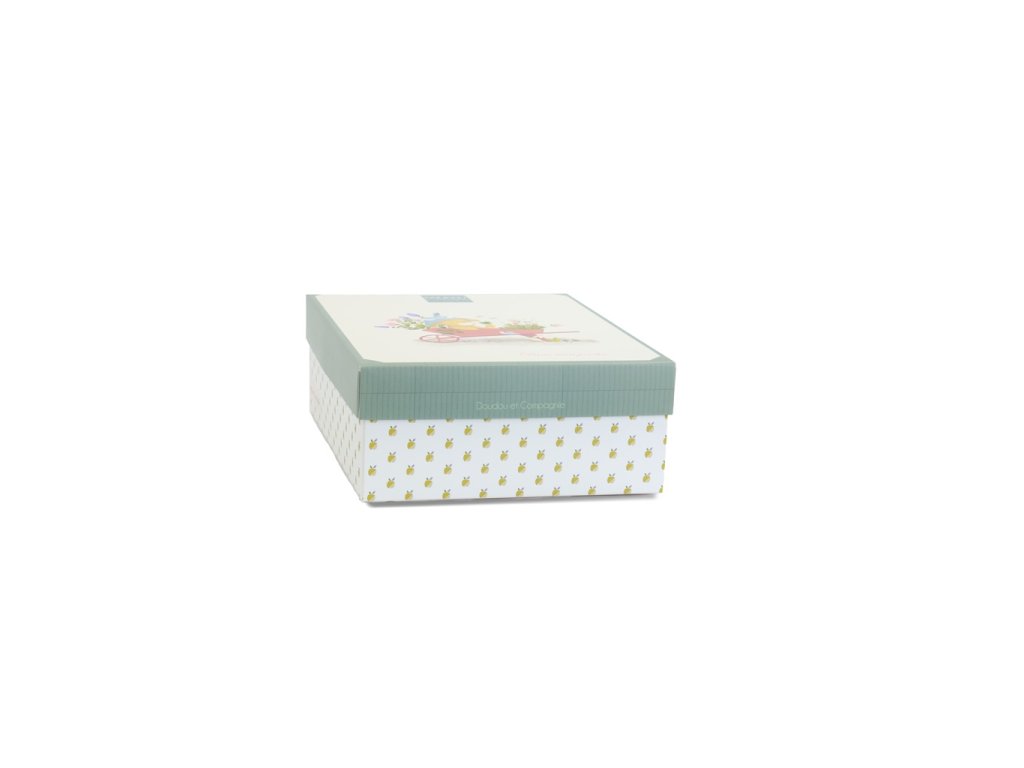Kravička Anette o velikosti 19 cm z kolekce „Moje zahrada“ je roztomilá hračka s praktickým integrovaným úchytem dudlíku. Je oblečena do zeleného manšestrového oblečku s květovaným límečkem. Různé textury vybízejí ke zkoumání a mačkání a dítě zabaví i uklidní. Hračka je zabalena v pěkné dárkové krabičce pro uložení vzpomínek (fotografie a další připomínky narození miminka) s veršovaným textem v angličtině na spodní straně. Ideální dárek pro jakoukoliv příležitost. Kolekce hraček „In my garden“ – Moje zahrada je inspirovaná přírodou. Hračky jsou zabalené v pěkných dárkových krabičkách ilustrovaných akvarelem a připomínají různorodost a barvy zahrady, což je podtrženo i jejich jmény jako je Ciboulette (pažitka), Aneth (kopr) a další. ÚdržbaPerte v lázni na 30°. Sušte přirozeně nebo v sušičce při nízké teplotě. Hlavní vlastnosti: držák na dudlík a hračka 2 v 1prémiový materiálv souladu s evropskými normami CEdárková krabička pro uložení vzpomínekvhodné od narozeníideální jako dárekDoplňkové parametry