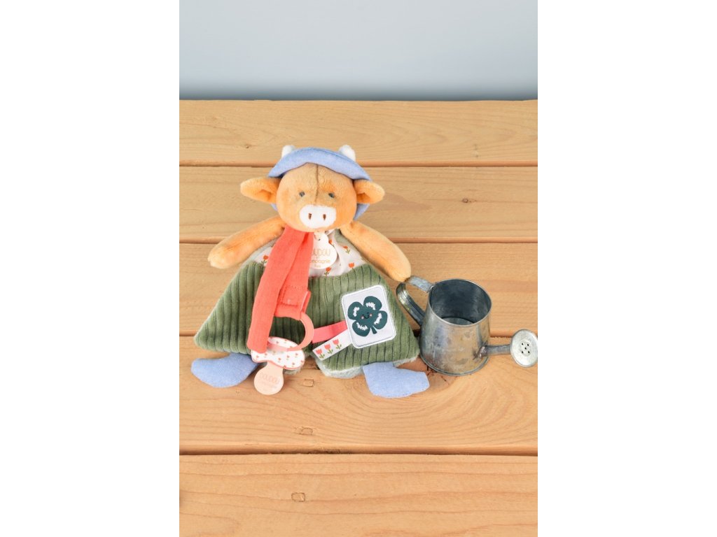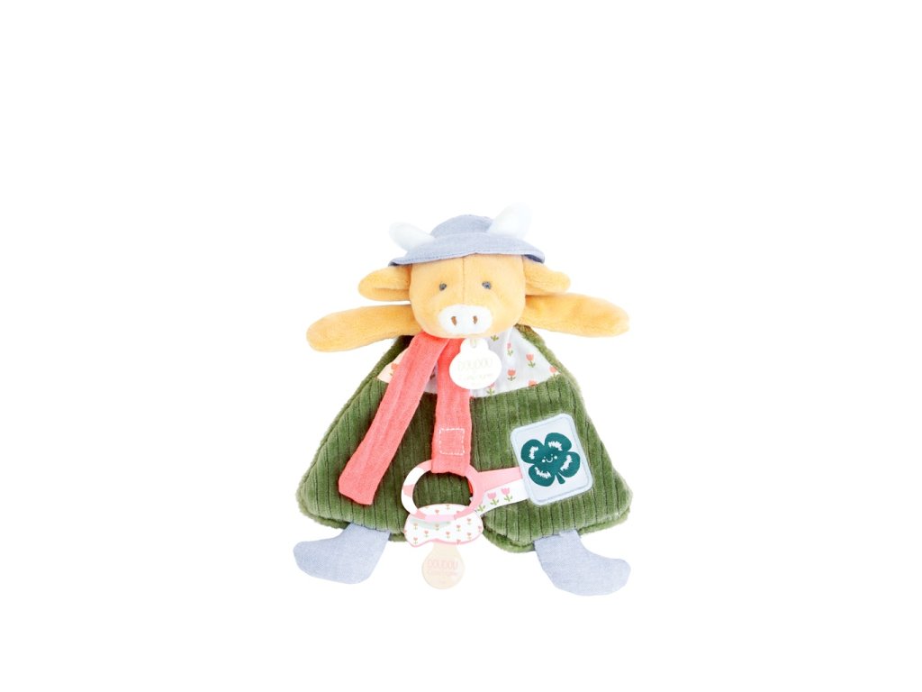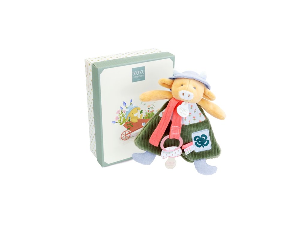Doudou Dárková sada Plyšová kravička Aneth s úchytem na dudlík 19 cm