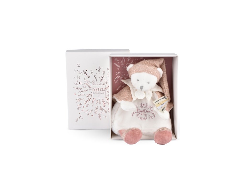 Doudou Dárková sada Plyšový muchláček medvídek s čepičkou růžový 25 cm