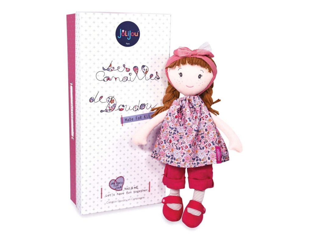 Látková panenka Capucine je věčná optimistka, proměňuje malá neštěstí ve staré vzpomínky. Ráda nosí krátké tmavě růžové kalhoty, halenku s barevnými květy a tmavě růžové balerínky. To vše ještě podtrhuje její růžová čelenka s velkou mašlí s částí bílého tylu. Oblečení je navíc možné svlékat a zase oblékat. Panenka je dodávána v originální dárkové krabičce. Hračka splňuje evropské bezpečností CE normy. Údržba: Perte v lázni na 30° Doporučení: Přirozené nebo nízkoteplotní sušení. Hlavní vlastnosti: vhodné od narozeníbavlněný obličej, vyšívané oči i ústa a pihypanenka s doplňky, které je možné svlékat a oblékatv dárkové krabičceDoplňkové parametry