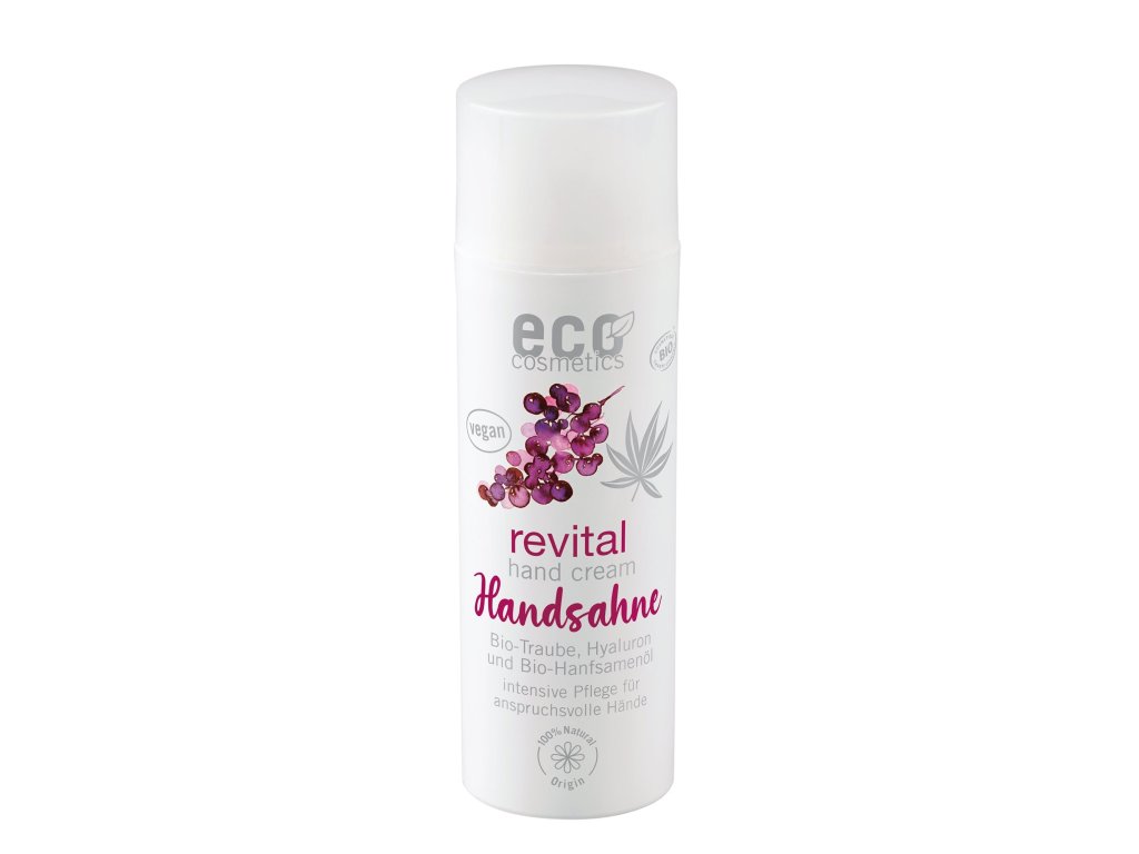 Krém na ruce řady Revital od německých Eco Cosmetics s BIO hroznovým olejem, kyselinou hyaluronovou a BIO konopným olejem přináší ideální péči pro suchou a napjatou pokožku rukou. Krém je navržen tak, aby pokožku chránil před volnými radikály, zadržoval vlhkost a zvyšoval její elasticitu. Další organické přírodní složky jako bambucké máslo a voda z granátového jablka zanechávají vaše ruce sametově hebké a intenzivně vyživené. Krém je veganský, netestovaný na zvířatech a nese přísnou certifikaci Ecocert Cosmos Organic, což zaručuje přírodní původ surovin. Jeho jemná, přírodní vůně dodává příjemný pocit a lze jej použít i jako masku na ruce. Perfektní volba pro ty, kteří si chtějí dopřát přírodní péči nejvyšší kvality.