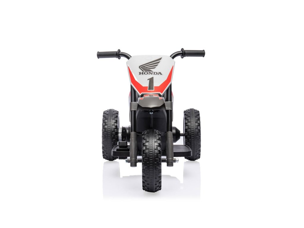 Po zapnutí se ozve zvuk motoru a po sešlápnutí plynového pedálu se motorka rozjede. Velká kola s terénním vzorkem zajišťují stabilitu při jízdě venku a tvarované sedadlo zajišťuje pohodlí a bezpečnost nejmenších uživatelů. Ocelové osy kol zaručují stabilitu a odolnost vozidla. Součástí je také klakson, díky kterému bude hraní ještě zábavnější.