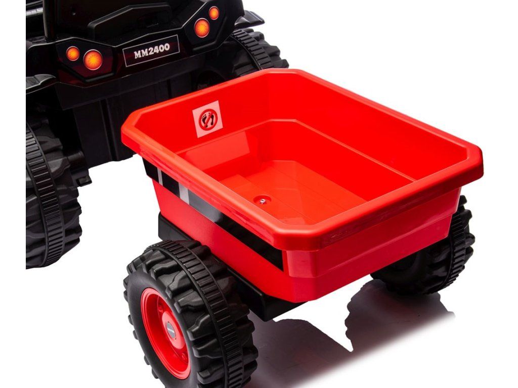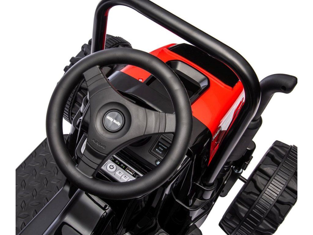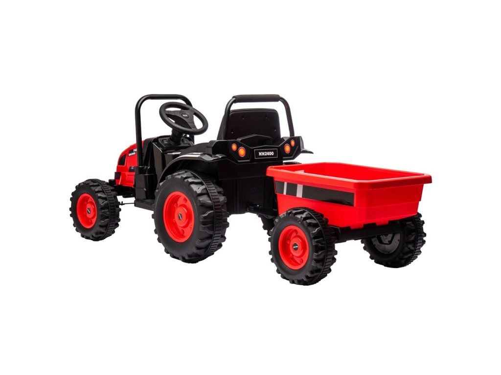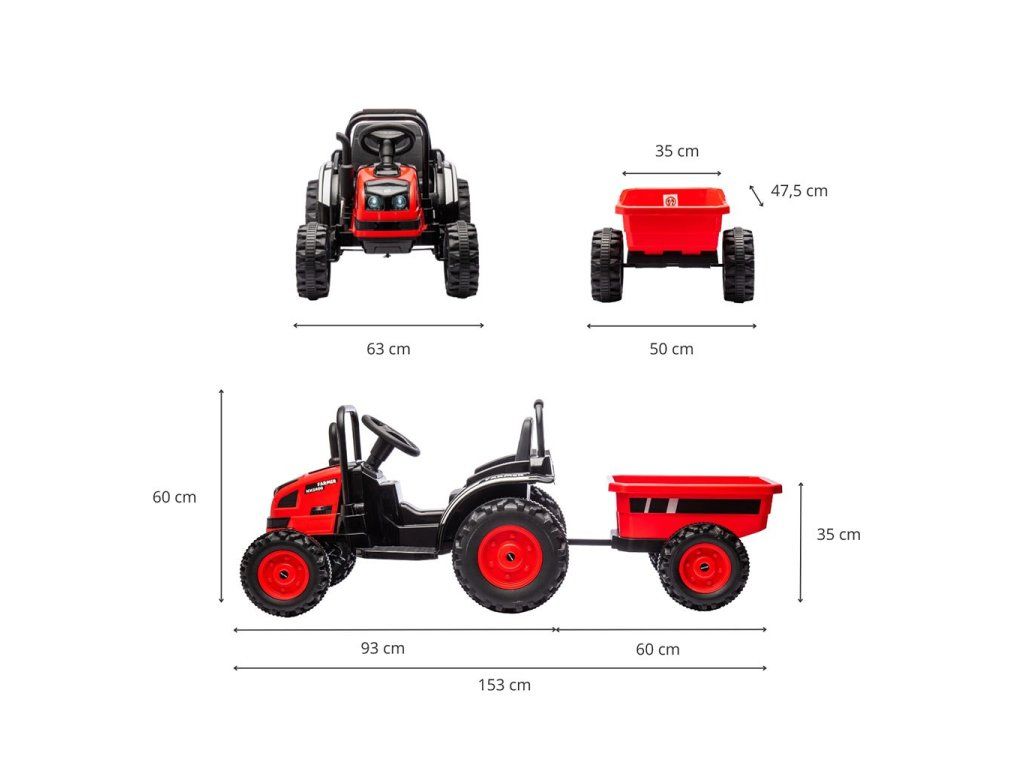 Jedná se o ideální vozidlo pro děti ve věku od 3 do 5 let. Traktor je dodáván s přívěsem pro další zábavu. Kovové bezpečnostní tyče vpředu a vzadu a imitace komína / výfuku, vrčivý zvuk motoru traktoru, to vše umožňuje malým řidičům popustit uzdu své fantazii a cítit se jako skuteční traktoristé. Vypínač aktivuje realistický vrčivý zvuk motoru traktoru, zatímco tlačítko současně vypíná vozidlo. Dva motory umístěné v traktoru dosahují průměrné rychlosti 3-5 km/h.