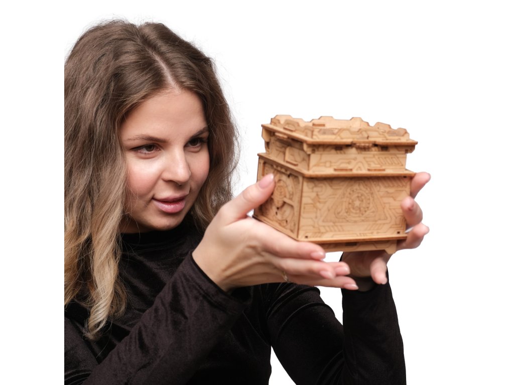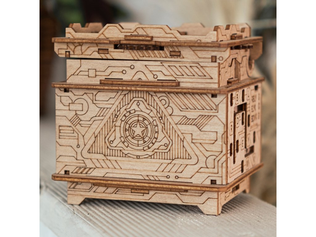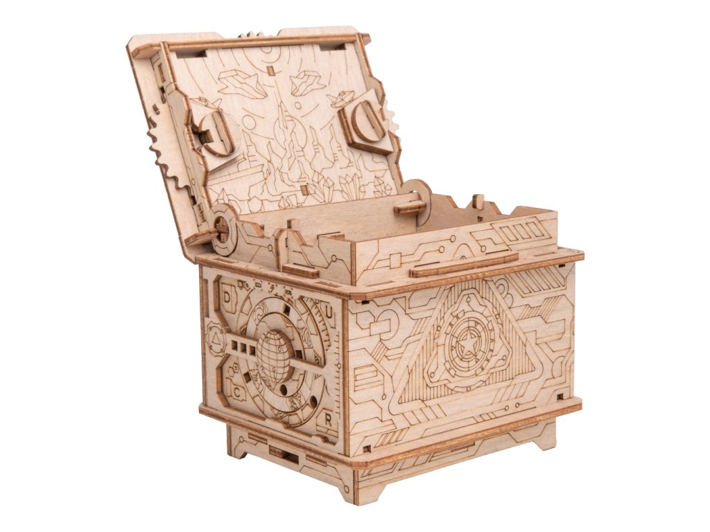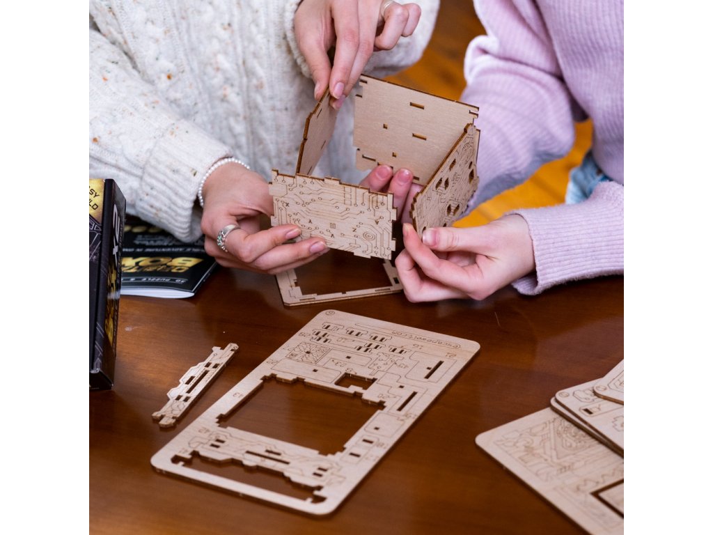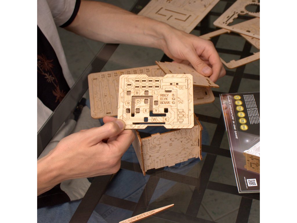 Velíte kolonizačnímu týmu, který míří k jediné obyvatelné planetě ve známém vesmíru, Elysii. Vaše loď opustila sluneční soustavu a provedla skok napříč časoprostorem, aby lidstvu nakonec otevřela nové obzory. K dosažení cíle zbývá udělat už jen několik nezbytných kroků, zkontrolovat radar, určit přesné místo přistání, vypnout systém autopilota a vložit spouštěcí klíče. Kdyby jen napájecí systém lodi nebyl tak matoucí… Ach, hotové bludiště!Jste však zkušený kapitán a žádný úkol Vás nezaskočí. K přípravě přistání v novém domově budete muset zadat správné kombinace písmen a čísel, vložit hesla do databáze a vyhledat spouštěcí klíče. Nezapomeňte na systém proti nedůslednému vkládání, bedlivě sledujte symboly! Chybná zadání zabrání úspěšnému spuštění přistávací sekvence. Zlomte vaz, kapitáne!∗★∗Nepovažujete hotový hlavolam za dostatečnou výzvu a chcete jej napřed sami sestavit? S novou řadou mechanických puzzle EscapeWelt máte jedinečnou příležitost! Stavebnicí z překližky vyzkoušíte svůj důvtip a dovednosti hned dvakrát. Výsledný model ukrývá malou přihrádku, kterou můžete kreativně využít k úschově vodítka ve vlastní dobrodružné hře, nebo zpestření zážitku z drobného dárku. Součástí balení je podrobný obrázkový návod k sestavení a postup odemknutí, který obsahuje také QR kód vedoucí na stránku s nápovědou. Rébus má vždy jedno řešení, kvalitním provedením je ale předurčen k dalšímu použití, neváhejte jím proto dále obdarovat a vyzvat své přátele, nebo členy rodiny. Hlavní vlastnosti: 88 precizně vyřezaných dílkůrozměry vnitřní přihrádky 7,5×9,5×8 cmnízká obtížnost sestavení, střední obtížnost řešeníúniková místnost pro více hráčůnení potřeba lepidlopřírodní březové dřevovyrobeno v EUDoplňkové parametry