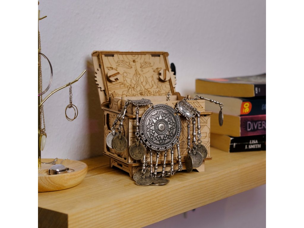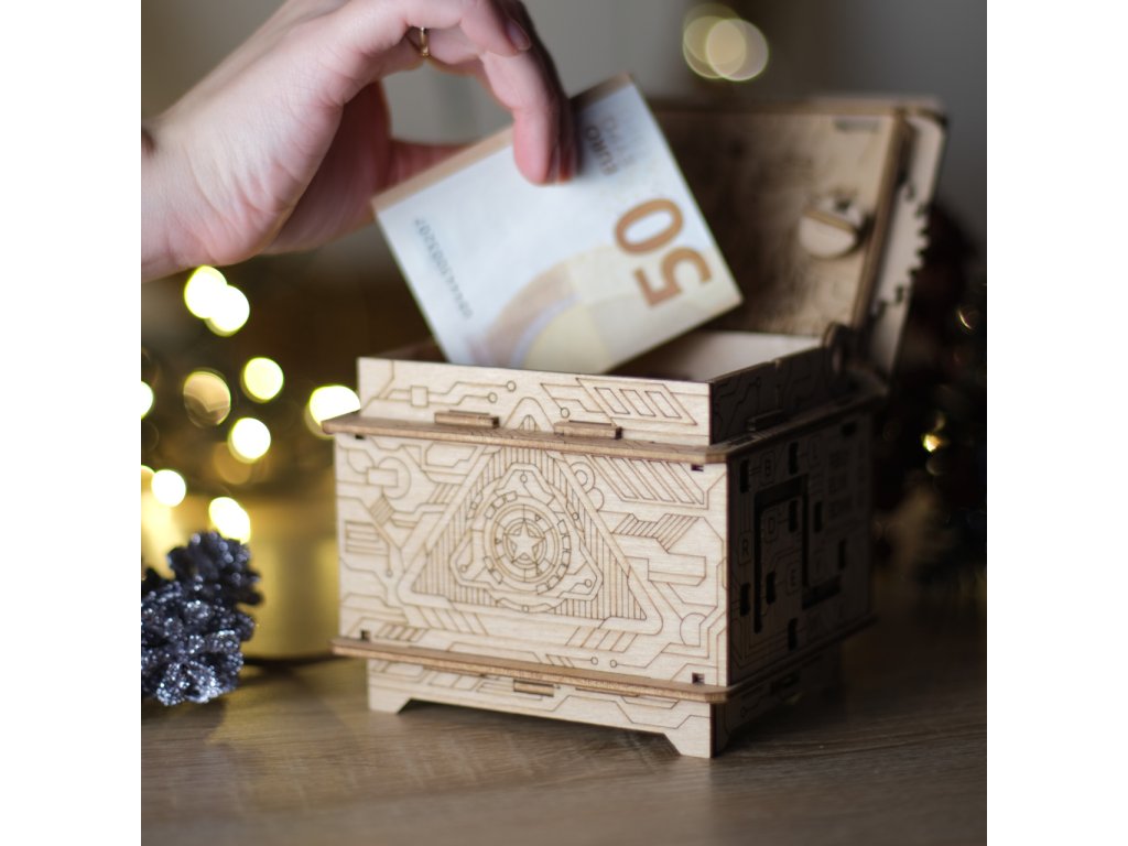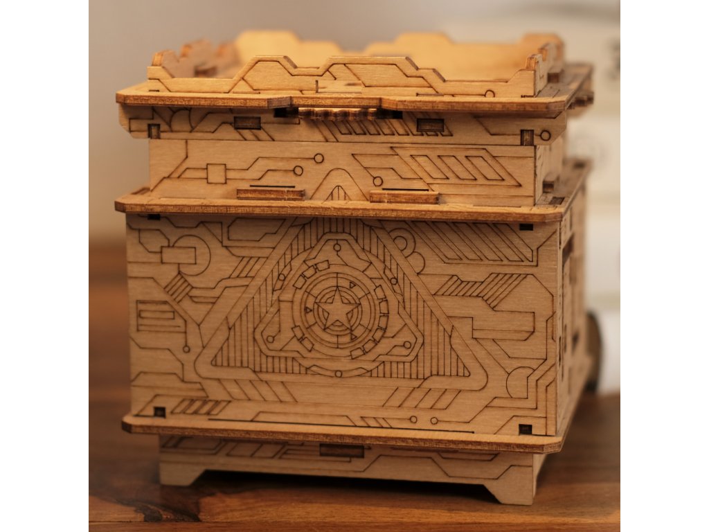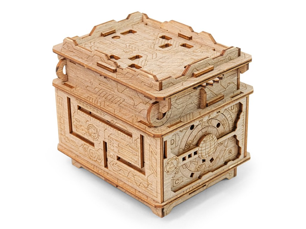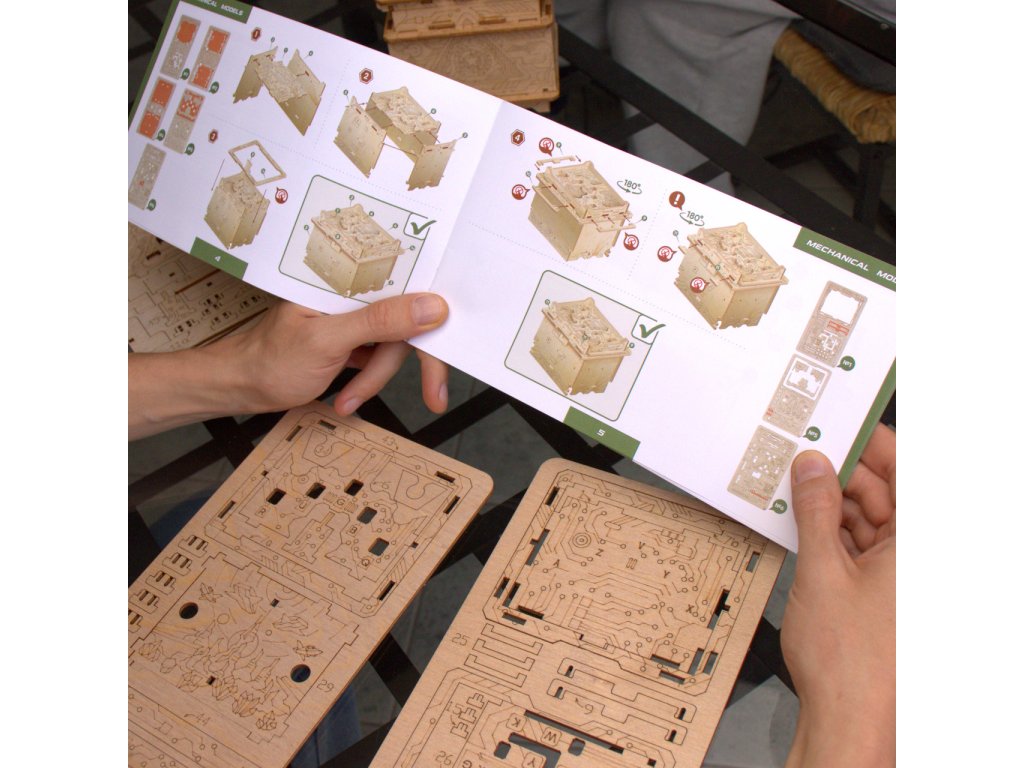 Velíte kolonizačnímu týmu, který míří k jediné obyvatelné planetě ve známém vesmíru, Elysii. Vaše loď opustila sluneční soustavu a provedla skok napříč časoprostorem, aby lidstvu nakonec otevřela nové obzory. K dosažení cíle zbývá udělat už jen několik nezbytných kroků, zkontrolovat radar, určit přesné místo přistání, vypnout systém autopilota a vložit spouštěcí klíče. Kdyby jen napájecí systém lodi nebyl tak matoucí… Ach, hotové bludiště!Jste však zkušený kapitán a žádný úkol Vás nezaskočí. K přípravě přistání v novém domově budete muset zadat správné kombinace písmen a čísel, vložit hesla do databáze a vyhledat spouštěcí klíče. Nezapomeňte na systém proti nedůslednému vkládání, bedlivě sledujte symboly! Chybná zadání zabrání úspěšnému spuštění přistávací sekvence. Zlomte vaz, kapitáne!∗★∗Nepovažujete hotový hlavolam za dostatečnou výzvu a chcete jej napřed sami sestavit? S novou řadou mechanických puzzle EscapeWelt máte jedinečnou příležitost! Stavebnicí z překližky vyzkoušíte svůj důvtip a dovednosti hned dvakrát. Výsledný model ukrývá malou přihrádku, kterou můžete kreativně využít k úschově vodítka ve vlastní dobrodružné hře, nebo zpestření zážitku z drobného dárku. Součástí balení je podrobný obrázkový návod k sestavení a postup odemknutí, který obsahuje také QR kód vedoucí na stránku s nápovědou. Rébus má vždy jedno řešení, kvalitním provedením je ale předurčen k dalšímu použití, neváhejte jím proto dále obdarovat a vyzvat své přátele, nebo členy rodiny. Hlavní vlastnosti: 88 precizně vyřezaných dílkůrozměry vnitřní přihrádky 7,5×9,5×8 cmnízká obtížnost sestavení, střední obtížnost řešeníúniková místnost pro více hráčůnení potřeba lepidlopřírodní březové dřevovyrobeno v EUDoplňkové parametry