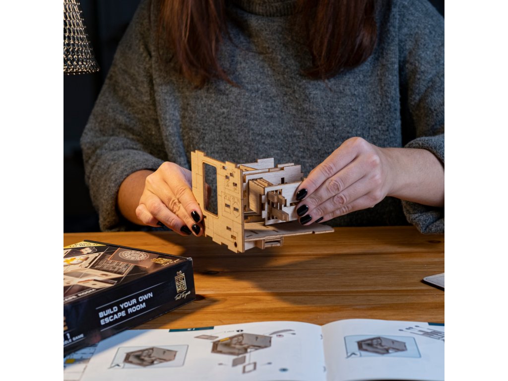 V roce 3143 vědci objevili další obyvatelnou planetu, X63Z. Na utajenou misi sbírat na planetě vzorky k dalšímu výzkumu byl vyslán zkušený astronaut Bubu. Na Zemi je již očekáván jeho návrat z náročné mise, když v tom je náhle zaznamenáno nouzové volání. Palivové články vesmírné lodi poškodil asteroid a hrozí jejich výbuch, posádka i cenný náklad jsou v bezprostředním ohrožení!Zapojte logické myšlení a pokuste se vysvobodit z vesmírného plavidla astronauta i nasbírané vzorky. Nejmodernější technologie zabezpečení lodi z celého úkolu dělají nelehkou misi. Podaří se Vám je včas zachránit?∗★∗Nepovažujete hotový hlavolam za dostatečnou výzvu a chcete jej napřed sami sestavit? S novou řadou mechanických puzzle EscapeWelt máte jedinečnou příležitost! Stavebnicí z překližky vyzkoušíte svůj důvtip a dovednosti hned dvakrát. Výsledný model ukrývá malou přihrádku, kterou můžete kreativně využít k úschově vodítka ve vlastní dobrodružné hře, nebo zpestření zážitku z drobného dárku. Součástí balení je podrobný obrázkový návod k sestavení a postup odemknutí, který obsahuje také QR kód vedoucí na stránku s nápovědou. Rébus má vždy jedno řešení, kvalitním provedením je ale předurčen k dalšímu použití, neváhejte jím proto dále obdarovat a vyzvat své přátele, nebo členy rodiny. Hlavní vlastnosti: 98 precizně vyřezaných dílkůrozměry vnitřní přihrádky 5×5×6 cmvysoká obtížnost sestavení a řešeníúniková hra pro více hráčůnení potřeba lepidlopřírodní březové dřevovyrobeno v EUDoplňkové parametry