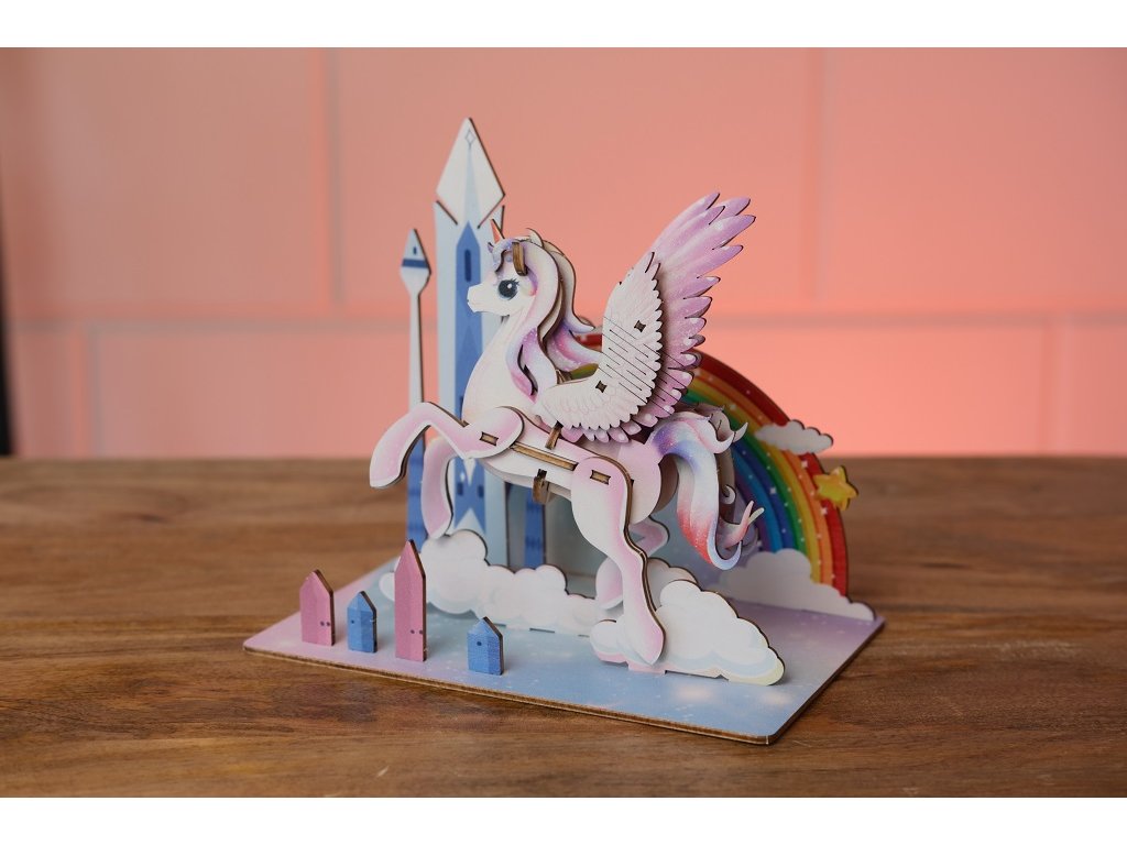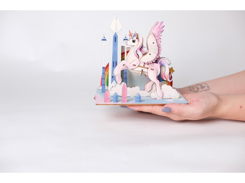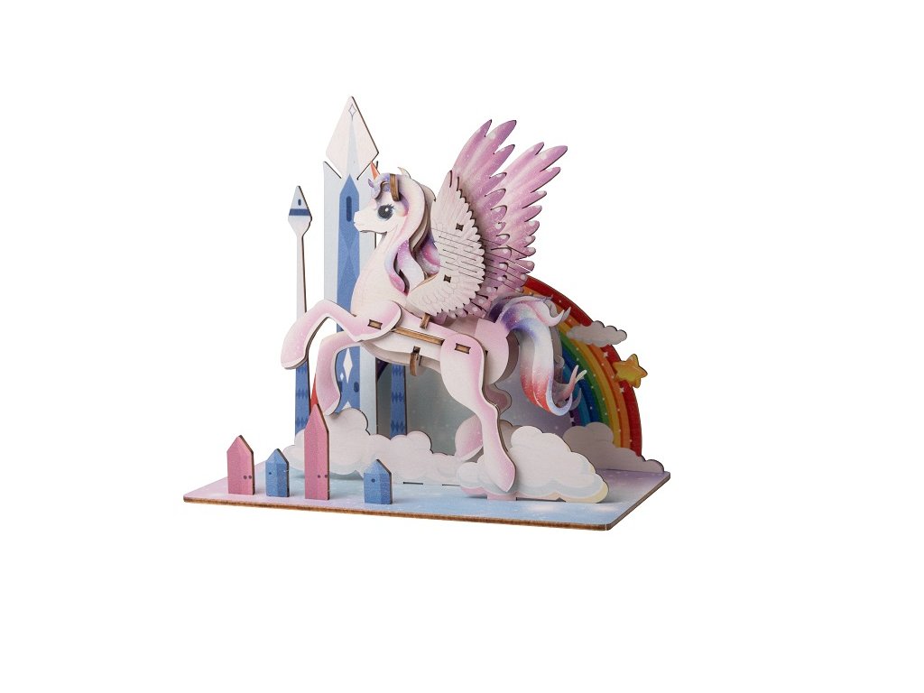 3D puzzle Jednorožec je pro děti zábavné a zároveň výzvou pro rozvoj jejich prostorové představivosti a logického myšlení. Rozvíjí se zároveň také jemná motorika. Toto dřevěné 3D puzzle obsahuje 33 dílků, které musí být správně složeny dohromady, aby vytvořily podobu oblíbeného jednorožce Jednotlivé díly z dřevěné překližky jednoduše vymáčknete a dle přiloženého návodu krok za krokem skládáte různé modely - dřevěné hračky. Puzzle nemusíte lepit lepidlem, pak je lze kdykoliv rozložit a znovu složit. Doporučujeme si proto ponechat návod ke stavbě. Barevné dřevěné 3D puzzle jsou opatřeny kvalitním potiskem. Tyto dřevěné hračky jsou určeny dětem od 8 let a splňují všechny normy EU.Tato stavebnice dětem poskytuje příležitost se dozvědět něco nového o jednorožcích a jejich magickém světě prostřednictvím zábavné a interaktivní hry. Upozornění: Není vhodné pro děti do 3 let, protože obsahuje malé součásti – hrozí nebezpečí udušení. Balicí materiál není hračka. Hlavní vlastnosti: přírodní dřevěné 3D puzzlerozvíjí jemnou motoriku a představivostvhodné od 8 letjednoduchá obtížnostDoplňkové parametry