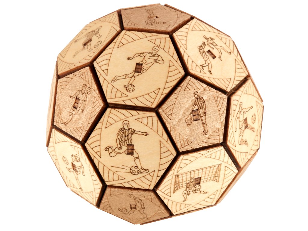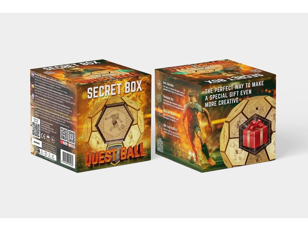Už žádný nudný balící papír! Emoce jsou nejlepší dárek... Hledáte vhodný dárek pro fotbalové nadšence? Pak věnujte tento dárek s překvapením a zažijte strhující zábavu díky Quest Ball skládačce. Chcete najít tajemství ukryté v tajné vnitřní schránce? Sdílejte s přátely zábavné okamžiky a soutěžte v odhalování mechanismu. Kdo první odhalí tajemství? Prokažte svou vynalézavost a vyřeště otevírací mechanismus. Věnujte dárek s překvapením, anebo skryjte svá vlastní tajemství díky tomuto dřevěnému míči s hlavolamem. Quest Ball v jedinečném designu je dokonalý pro uložení věcí, které jsou vašemu srdci drahé. Elegantní tvar jej proměňuje v umělecké dílo, které bude ozdobou interiéru nejen fotbalových fanoušků. Vyroben byl šetrně k životnímu prostředí, ze 100% přírodních materiálů a všechny jeho části byly přesně vyřezány nejlepší laserovou technologií. Splňuje všechny evropské bezpečnostní normy. Hlavní vlastnosti: vyrobeno ze 100% přírodních materiálůexkluzivní designprecizně vyřezano nejlepší laserovou technologiípoužitelné opakovaněvhodné jako kreativní dárek s překvapenímDoplňkové parametry