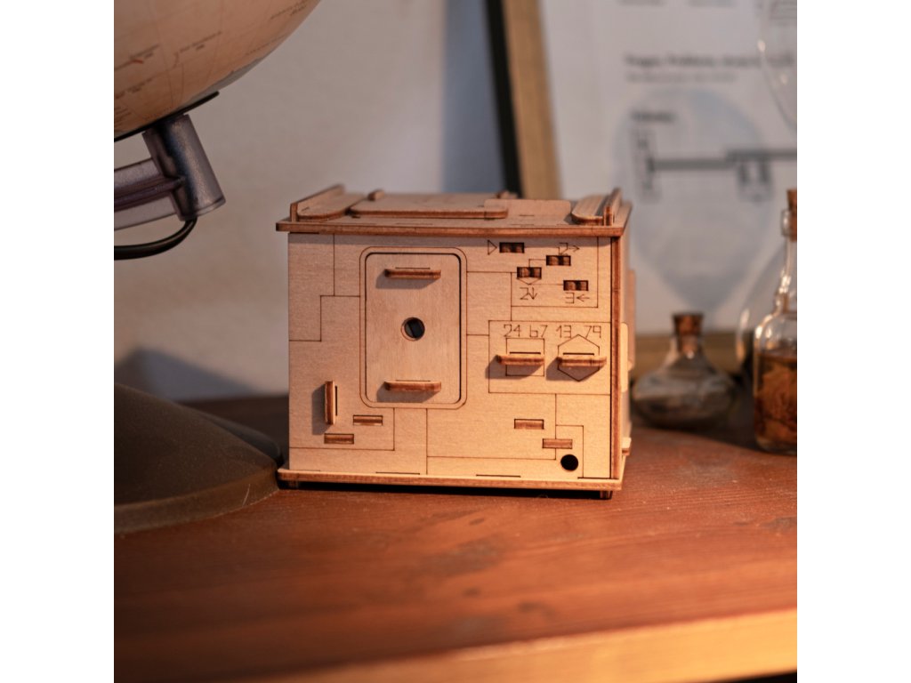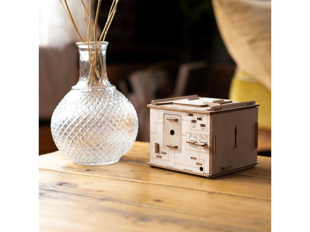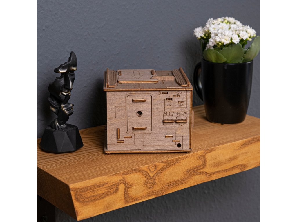 V roce 3143 vědci objevili další obyvatelnou planetu, X63Z. Na utajenou misi sbírat na planetě vzorky k dalšímu výzkumu byl vyslán zkušený astronaut Bubu. Na Zemi je již očekáván jeho návrat z náročné mise, když v tom je náhle zaznamenáno nouzové volání. Palivové články vesmírné lodi poškodil asteroid a hrozí jejich výbuch, posádka i cenný náklad jsou v bezprostředním ohrožení!Zapojte logické myšlení a pokuste se vysvobodit z vesmírného plavidla astronauta i nasbírané vzorky. Nejmodernější technologie zabezpečení lodi z celého úkolu dělají nelehkou misi. Podaří se Vám je včas zachránit?∗★∗Zakuste atmosféru únikových her s originálními scénáři a hádankami u Vás doma! Každý hlavolam ukrývá malou přihrádku, kterou můžete kreativně využít k úschově vodítka ve vlastní dobrodružné hře, nebo zpestření zážitku z drobného dárku. Součástí každého balení je jednoduchý obrázkový návod, který obsahuje také QR kód vedoucí na stránku s nápovědou. Rébus má vždy jedno řešení, kvalitním provedením je ale předurčen k dalšímu použití, neváhejte jím proto dále obdarovat a vyzvat své přátele, nebo členy rodiny. Zážitek obdarovaného zde můžete ještě umocnit za použití Tajemné dárkové krabičky, kterou naleznete v naší nabídce. Hlavní vlastnosti: rozměry vnitřní přihrádky 5×5×6 cmvysoká obtížnost řešeníjednoduchá montážvyrobeno z březového dřevavyrobeno v EUDoplňkové parametry