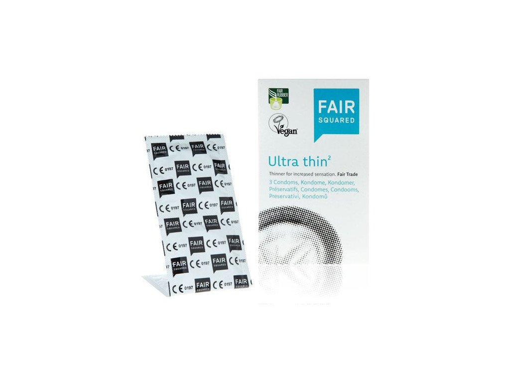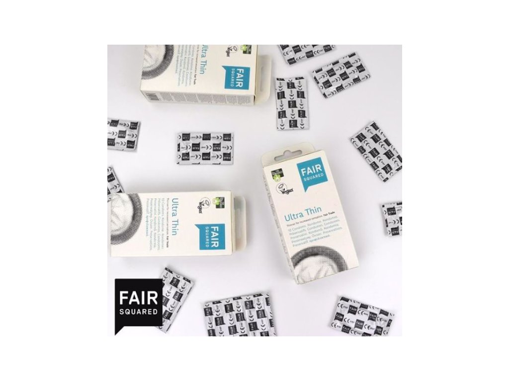 Kondomy Fair Squared jsou pohodlnou a účinnou bariérovou ochranou před nechtěným těhotenstvím a pohlavními chorobami. Varianta Ultra Thin je vyrobena z extra tenkého materiálu pro co nejpřirozenější prožitek. Na jeho přípravu byl použit přírodní latex vypěstovaný v Indii, v souladu s Fair Trade principy. Kondomy jsou bez příchutě a parfemace, s lubrikantem bez spermicidních složek. Na rozdíl od konvenčních kondomů neobsahují mléčný protein kasein, a jsou proto vhodné i pro vegany.Doplňkové parametry