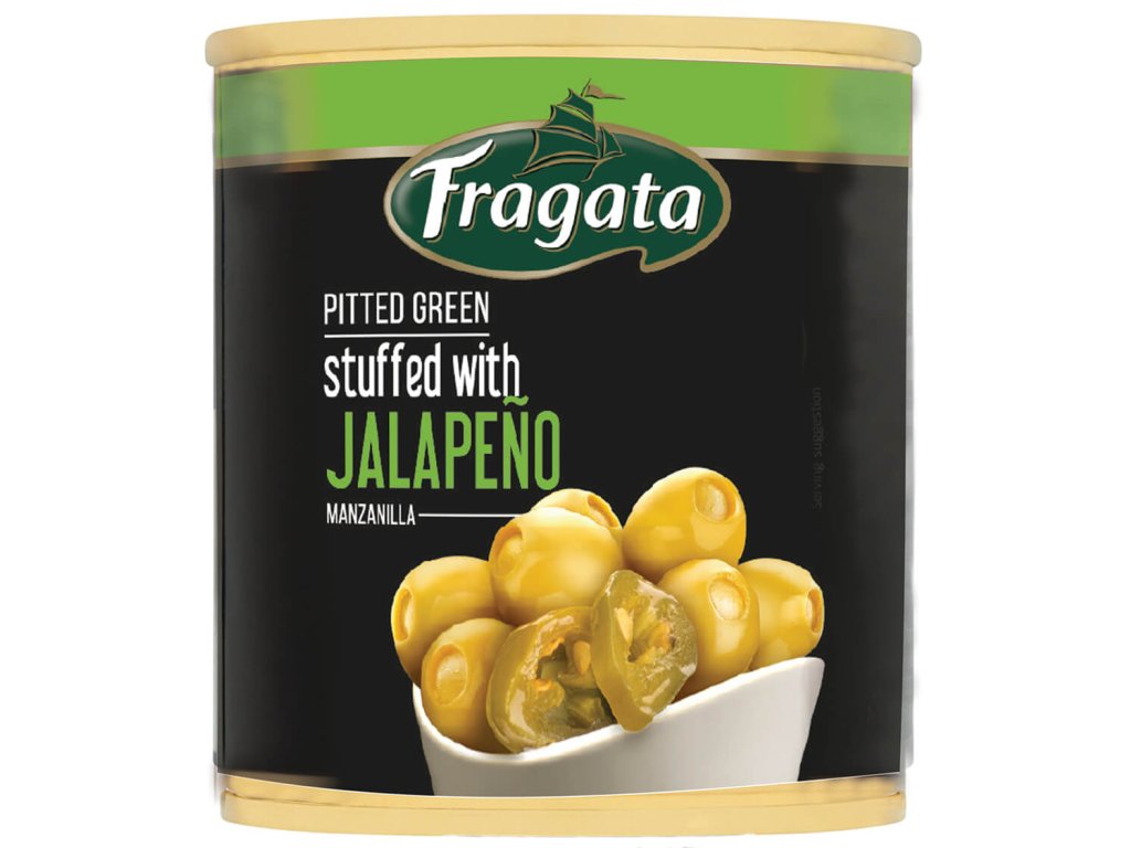 Fragata zelené olivy s Jalapeňo jsou šťavnaté olivy Manzanilla bez pecek, které v sobě ukrývají překvapení v podobě jemně pikantních papriček Jalapeňo.