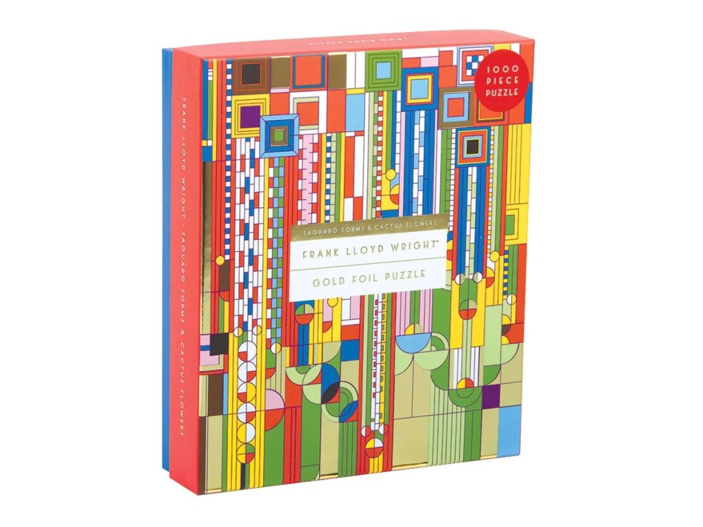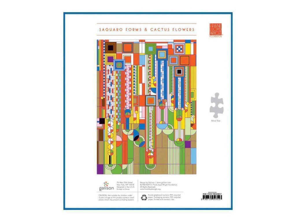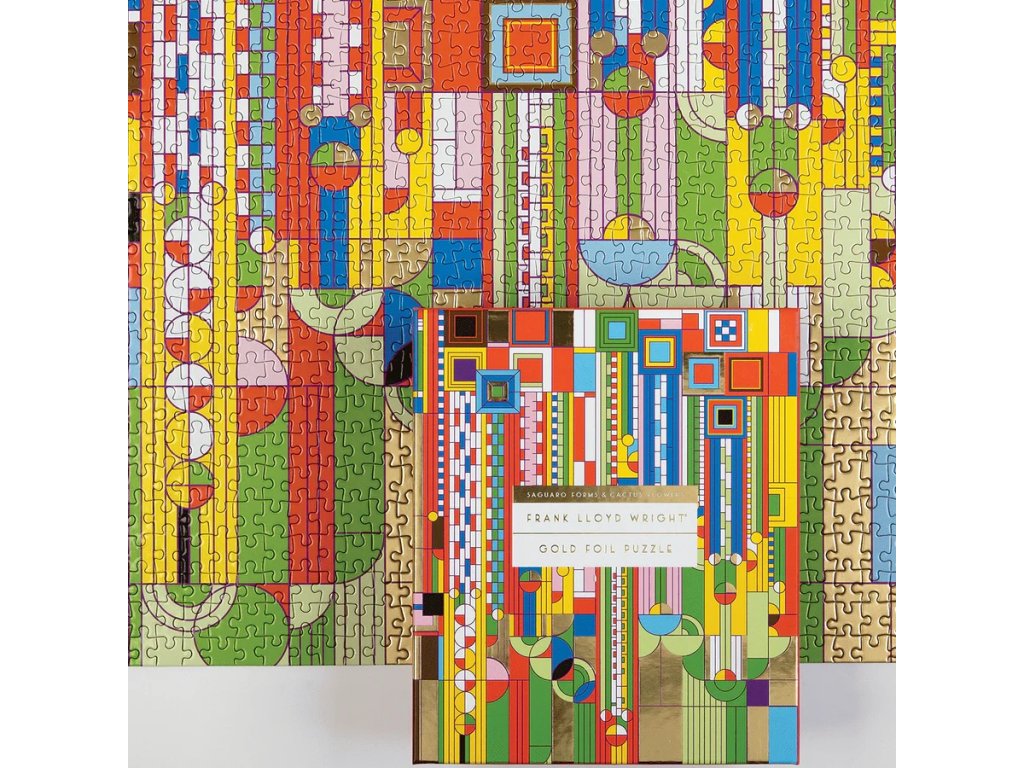 Puzzle Frank Lloyd Wright Saguaro Cactus and Forms přináší ikonickému uměleckému dílu nový rozměr díky speciálnímu povrchu. Puzzle je potaženo fólií, díky které se na světle leskne a vytváří tak dojem, že je ze zlata, stříbra a dalších lesklých kovů. Toto nádherné puzzle Vám přinese radost a relaxaci, Vaše rodina si ho zamiluje. Pro opětovné použití i skladovaní jsou dílky uloženy v pevné krabici. Ideální také jako dárek. Puzzle Galison jsou vyrobeny za použití významného podílu recyklovaného papíru a nabízí špičkový potisk nezávadnými barvami. Jsou opatřeny matnou povrchovou úpravou, která zajišťuje za všech okolností věrné podání detailů i barev. Jejich zadní strana je potažena hladkým, na dotek příjemným povrchem, díky němuž se při skladování rozloženého puzzle netvoří prach. Spolu s pečlivě zabalenými dílky naleznete v balení také letáček s návodným obrázkem, který zpravidla obsahuje další informace o tvůrcích a pozadí vzniku díla. Dodáváno v mimořádně pevné a poutavě zpracované kartonové krabičce vyrobené z recyklovaného kartonu. Hlavní vlastnosti: 1000 precizně vyřezaných dílkůvyrobeno s použitím recyklovaných a udržitelně získaných materiálůpečlivě vybraný motiv od renomovaných tvůrců a umělcůpotisk a provedení nejvyšší kvalityobsahuje návodný obrázekDoplňkové parametry