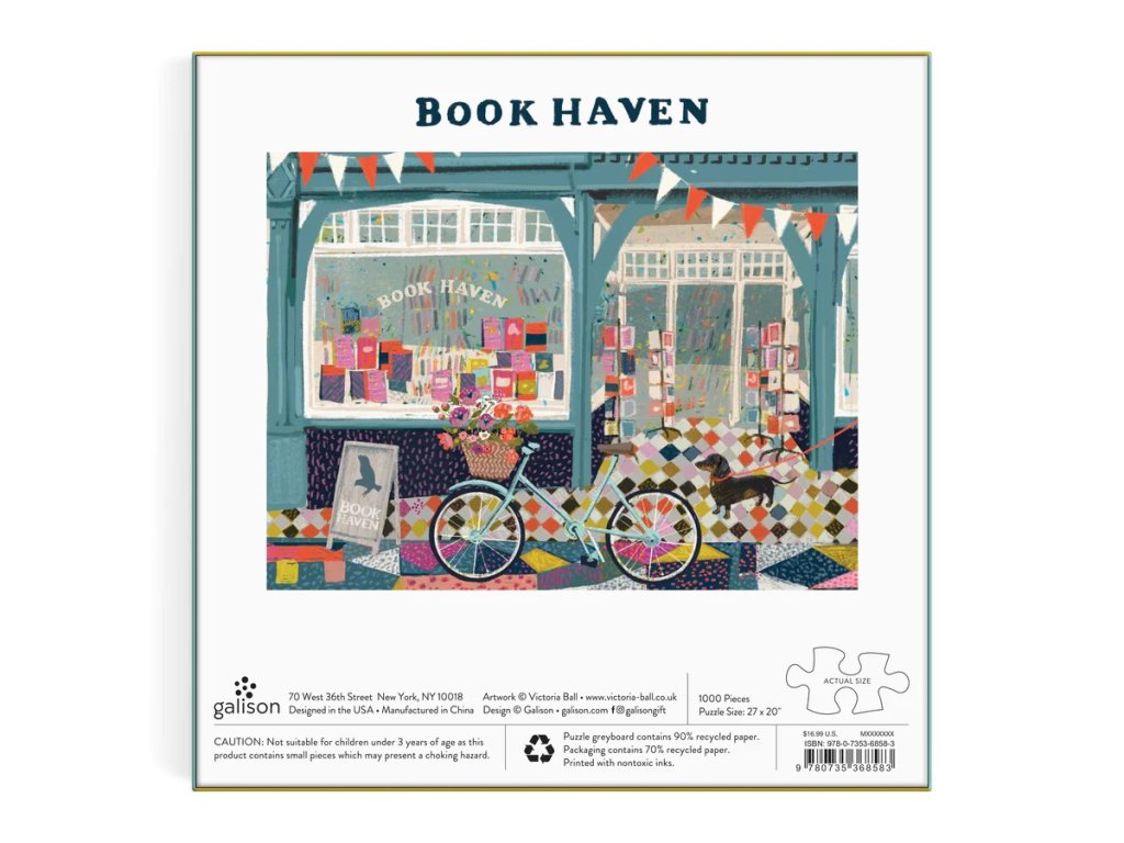 Kniha Book Haven obsahuje okouzlující ilustraci bestsellerové umělkyně Victoria Ball z knihkupectví s rozkošným pozdravem jezevčíka u předních dveří. Puzzle je baleno v pevné krabici, pro opětovné použití a skladování. Ideální jako dárek. Autorem obrázku je Victoria Ball. Puzzle jsou vyrobeny za použití významného podílu recyklovaného papíru a nabízí špičkový potisk nezávadnými barvami. Jsou opatřeny matnou povrchovou úpravou, která zajišťuje za všech okolností věrné podání detailů i barev. Jejich zadní strana je potažena hladkým, na dotek příjemným povrchem, díky němuž se při skladování rozloženého puzzle netvoří prach. Spolu s pečlivě zabalenými dílky naleznete v balení také letáček s návodným obrázkem, který zpravidla obsahuje další informace o tvůrcích a pozadí vzniku díla. Dodáváno v mimořádně pevné a poutavě zpracované kartonové krabičce vyrobené z recyklovaného kartonu. Hlavní vlastnosti: 1000 precizně vyřezaných dílkůvyrobeno s použitím recyklovaných a udržitelně získaných materiálůpečlivě vybraný motiv od renomovaných tvůrců a umělcůpotisk a provedení nejvyšší kvalityobsahuje návodný obrázekDoplňkové parametry