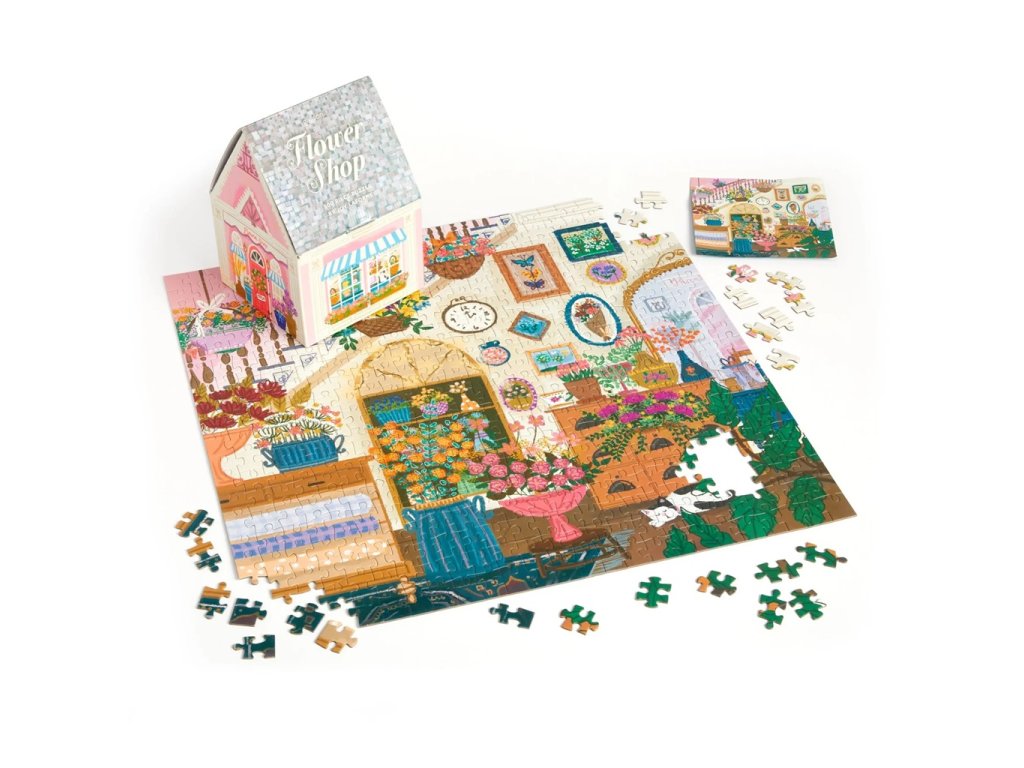 Toto barevné puzzle s námětem květinářství je zabaleno v dekorativní krabičce ve tvaru domu. Je vytvořeno podle námětu americké umělkyně Joy Laforme, která se mimo jiné zabývá ilustracemi knih, obálek knih a puzzlí. Zobrazuje interiér stylového obchůdku s různými druhy řezaných a hrnkových květin. Ať už hledáte zábavnou aktivitu pro deštivý den nebo jedinečný dárek pro milovanou osobu, toto puzzle potěší a stane se atraktivním doplňkem dětského pokojíčku, obývacího pokoje nebo kanceláře. Puzzle je vyrobeno zodpovědně za použití vysokého podílu recyklovaného papíru s certifikací FSC® a je potištěno netoxickými barvami. Hlavní vlastnosti: zabaleno v dekorativní krabičce ve tvaru domuvyrobeno s použitím recyklovaných a udržitelně získaných materiálůpotištěno netoxickými barvamirozvíjí logické myšlení a motoriku a koordinaci ruka-oko Značka a certifikát FSC® (Forest Stewardship Council) zaručuje, že dřevo, ze kterého byl produkt vyroben, nebylo vytěženo nelegálně a pochází z lesů obhospodařovaných šetrným či přírodě blízkým způsobem, ve kterém jsou dodržovány přísné environmentální a sociální požadavky. Značka FSC® na výrobku znamená, že svým nákupem pomáháte chránit lesy a podporujete šetrné, odpovědné či přírodě blízké hospodaření, díky kterému jsou naše lesy stabilnější, zdravější, mají přirozenou druhovou skladbu a lépe odolávají negativním následkům klimatických změn.Doplňkové parametry