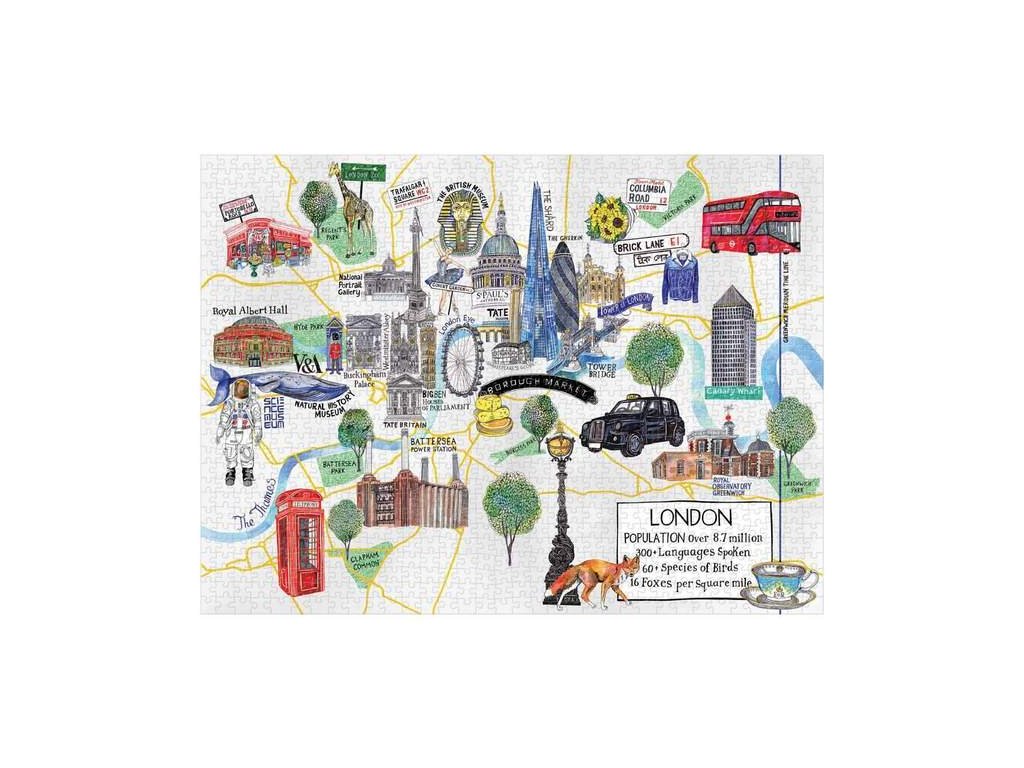 Poznejte Londýn zpracováním této ilustrované mapy města s nejznámějšími místy a památkami Londýna, včetně Buckinghamského paláce, Trafalgarského náměstí, Royal Albert Hall a mnoha dalších. Pzzle je zabaleno ve stylové robustní krabičce s matným povrchem. Design Hennie Haworth. Hlavní vlastnosti: Obsahuje 1000 dílkůPotištěno netoxickými inkoustyPrémiová kvalita puzzleJednotlivé dílky do sebe přesně pasujíRozvíjí logické myšlení a motorikuDoplňkové parametry