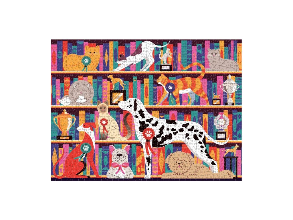 Poskládejte si toto 1000 dílné puzzle s motivem výstavních psů a koček. Puzzle s barevnou knihovnou plnou ocenění, knih a trofejí je ideální pro rozvoj logického myšlení a motoriky. Autorem obrázku je Michael Driver. Tato pestrobarevná skládačka bude zábavou pro celou rodinu. Dodáváno v robustní kartonové krabičce vyrobené z recyklovaného kartonu a udržitelně získaných materiálů s certifikací FSC®. Hlavní vlastnosti: obsahuje 1000 dílkůvyrobeno s použitím recyklovaných a udržitelně získaných materiálůpotištěno netoxickými inkoustyprémiová kvalita puzzlerozvíjí logické myšlení a motorikuskvělá rodinná aktivita Značka a certifikát FSC® (Forest Stewardship Council) zaručuje, že dřevo, ze kterého byl produkt vyroben, nebylo vytěženo nelegálně a pochází z lesů obhospodařovaných šetrným či přírodě blízkým způsobem, ve kterém jsou dodržovány přísné environmentální a sociální požadavky. Značka FSC® na výrobku znamená, že svým nákupem pomáháte chránit lesy a podporujete šetrné, odpovědné či přírodě blízké hospodaření, díky kterému jsou naše lesy stabilnější, zdravější, mají přirozenou druhovou skladbu a lépe odolávají negativním následkům klimatických změn.Doplňkové parametry