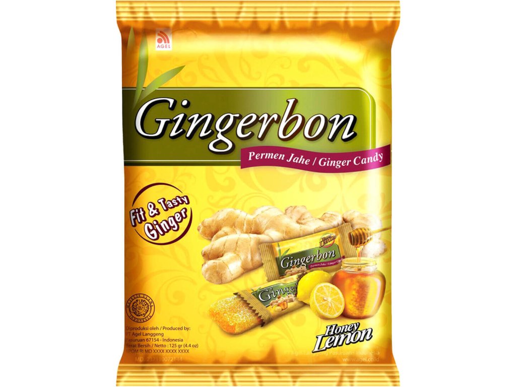 Cukr, zázvor, tapiokový škrob, zázvor (8,2%), rostlinný kokosový olej, aroma, med (0,17%), výtažek z citronu (0,16%).