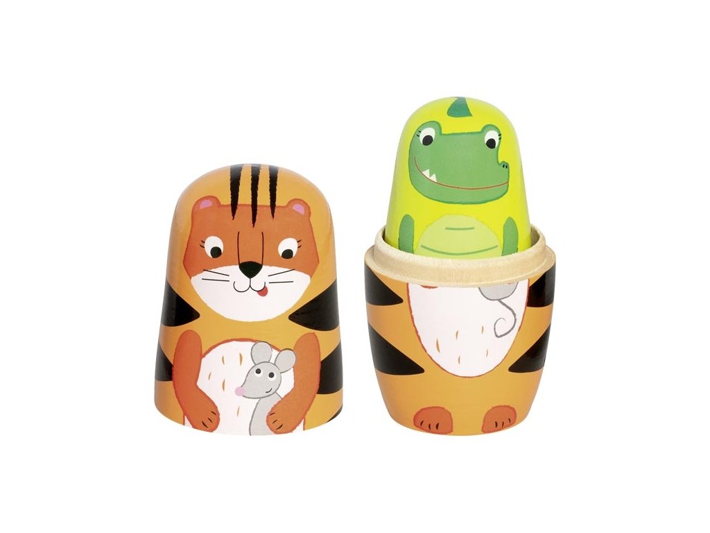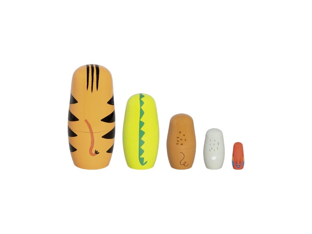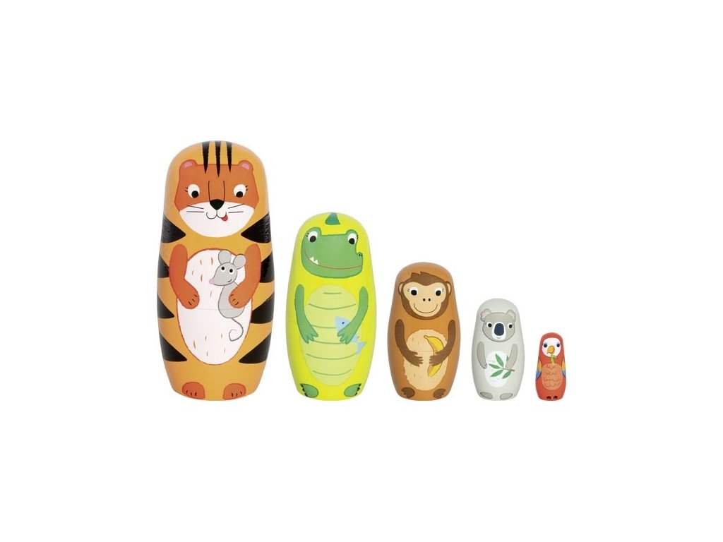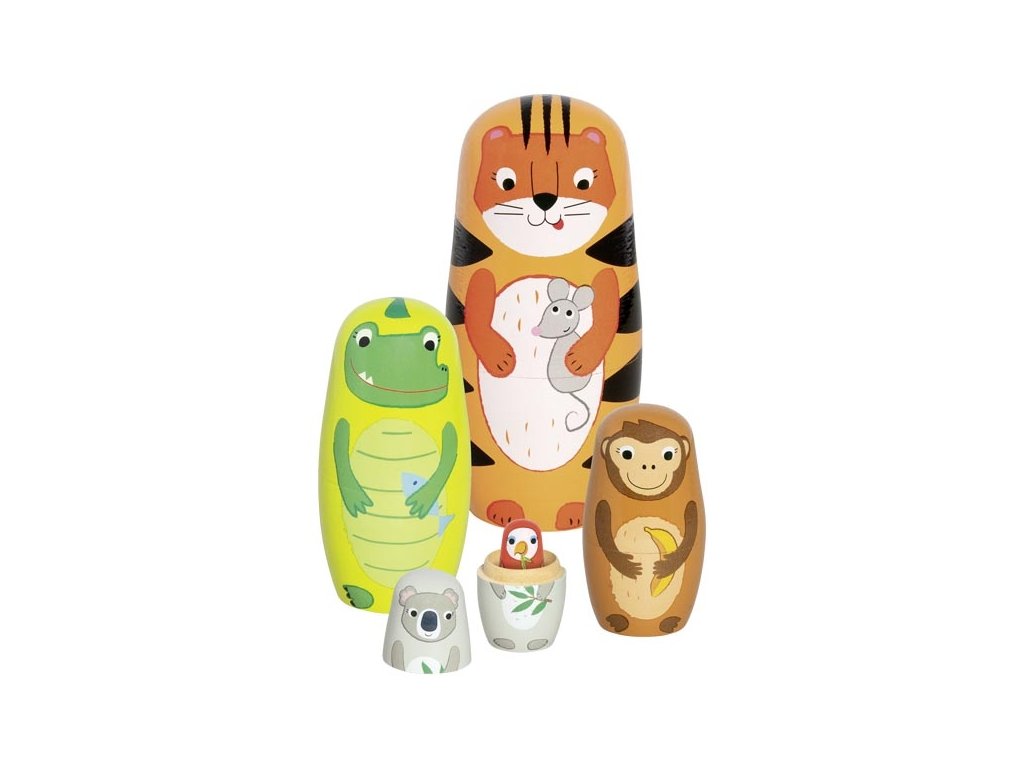 Matrjošky přitahují děti i dospělé již po staletí. Láskyplně malované figurky matrjoška v podobě exotických zvířátek. Menší zvířátka se podle velikosti postupně schovávají do sebe. Tyto panenky se snadno uprostřed otevírají, což je skvělá praxe pro koordinaci ruka-oko a jemné motorické dovednosti. Figurky matrjošky vyzařují své jedinečné kouzlo a jsou roztomilé na pohled. Lákavý poutač s velkým studijním potenciálem pro Váš dětský pokoj. Hlavní vlastnosti: lákavý poutač s velkým studijním potenciálemrozvíjí koordinaci ruka-oko a jemné motorické dovednostiDoplňkové parametry