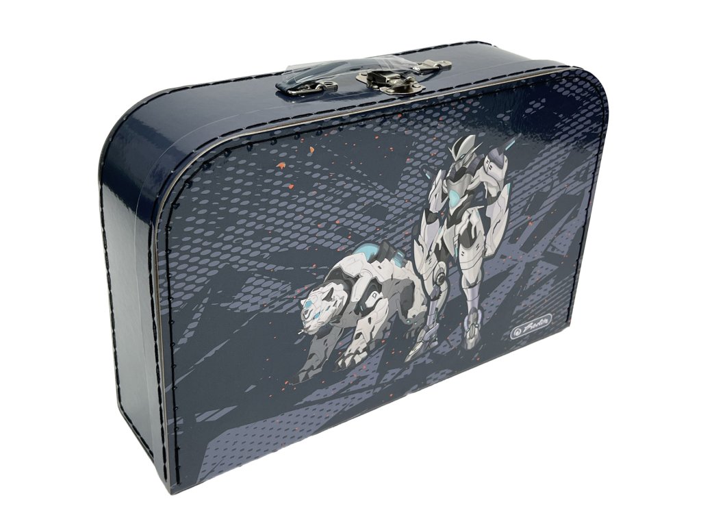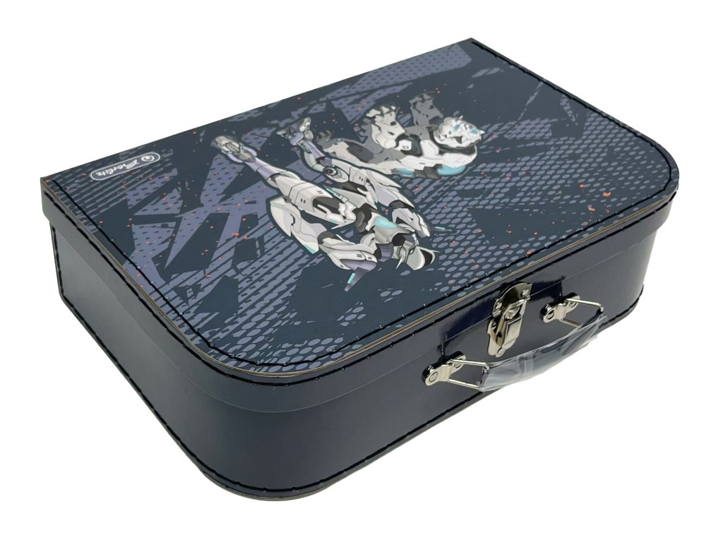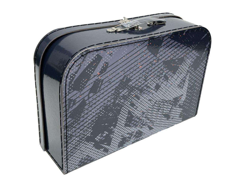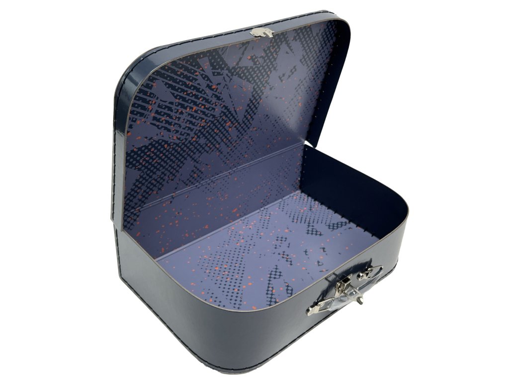 Dětský kufřík je vyrobený z kartonové lepenky a potažený potištěným papírem. Uzavírá se kovovou sponkou. Součástí kufříku je i praktické ucho na snadné přenášení. Kufřík je vhodný nejen do školy na výtvarné potřeby, ale i pro uchování hraček a malých dětských pokladů. Rozměry kufříku jsou cca 35,5 x 23 x 10 cm.