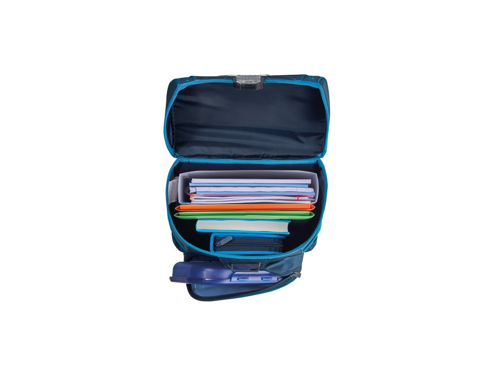37x31x22cm, ergonomicky tvarované a prodyšné polstrování zad, nastavitelné ramenní popruhy, výškově nastavitelný hrudní pás, hlavní kapsa s prostorem pro knihy, boční kapsy s elastickými pásky, přední kapsa na zip, stabilní spodní deska, pohodlná rukojeť, zavírání Click lock, reflexní materiály Oralite, integrovaná odrazka v zámku. Hmotnost 950 g, objem 15 l.