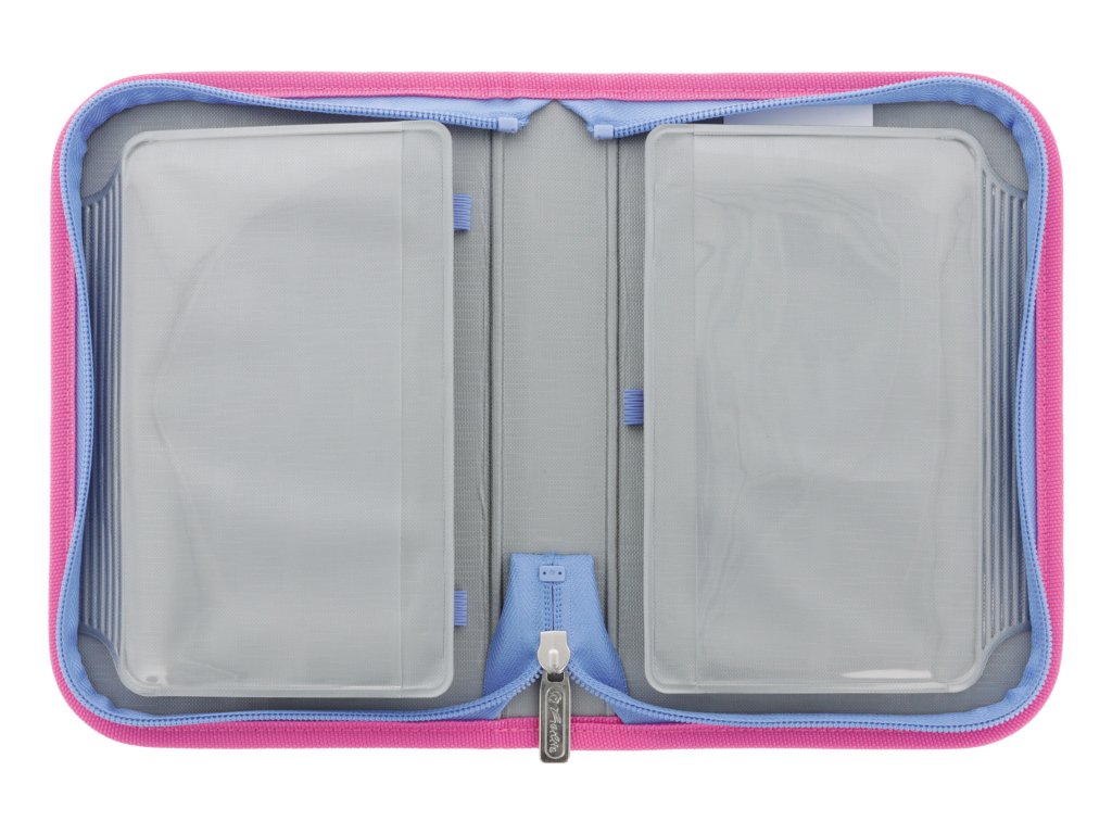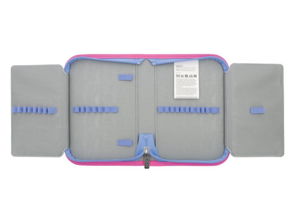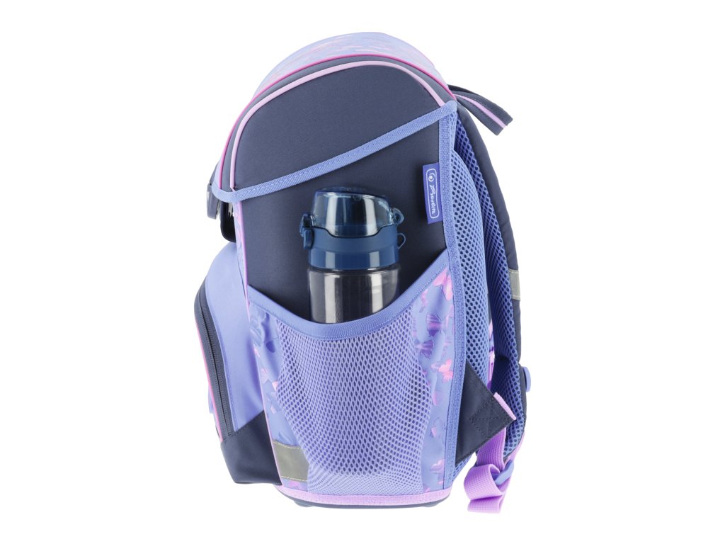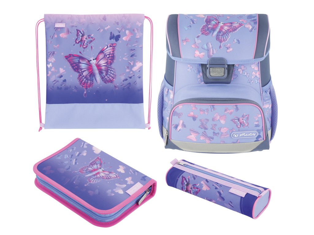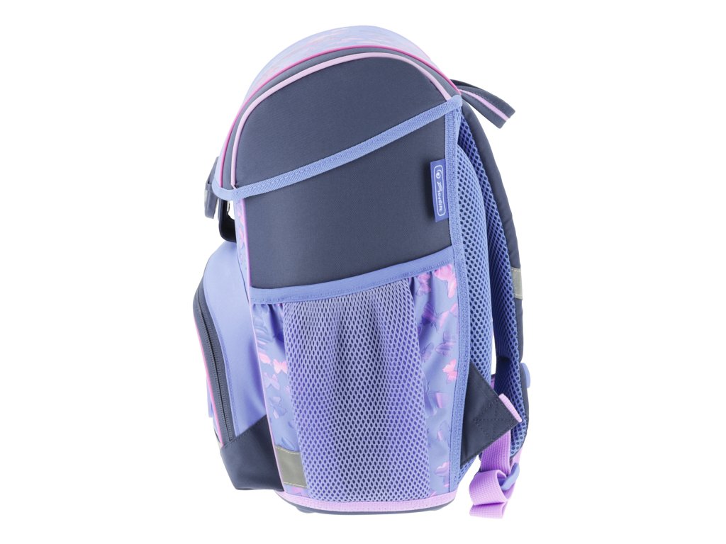 37 x 31 x 22 cm, ergonomicky tvarované a prodyšné polstrování zad, nastavitelné ramenní popruhy, výškově nastavitelný hrudní pás, hlavní kapsa s prostorem pro knihy, boční kapsy s elastickými pásky, přední kapsa na zip, stabilní spodní deska s nožičkami, pohodlná rukojeť, zavírání Click lock s odrazkou, reflexní materiály Oralite. Hmotnost 950 g, objem 16 l, voděodolná, bez PVC, výbava: penál, sáček na cvičky, kulaté pouzdro, certifikát ergonomie 2023 a 2025