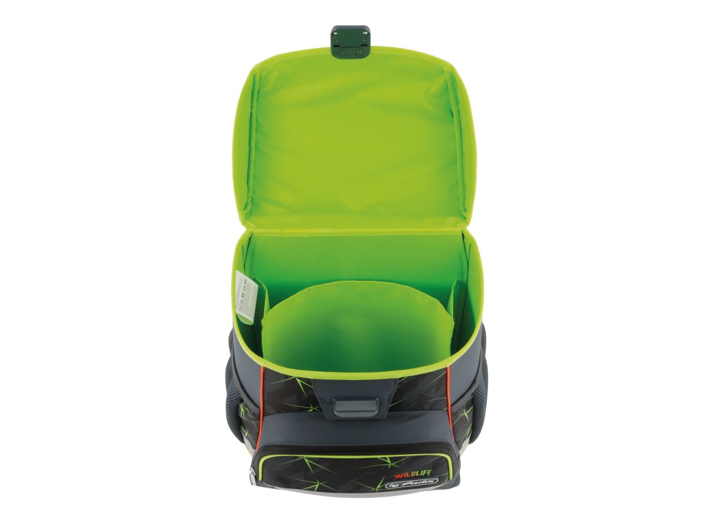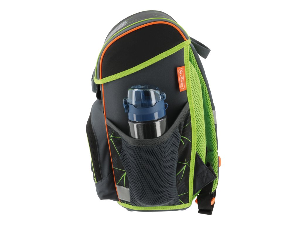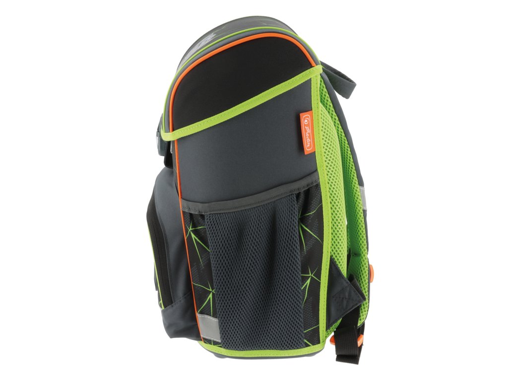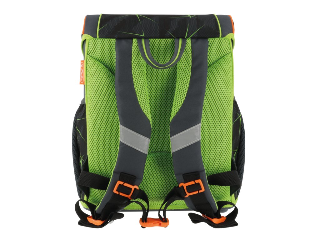 37 x 31 x 22 cm, ergonomicky tvarované a prodyšné polstrování zad, nastavitelné ramenní popruhy, výškově nastavitelný hrudní pás, hlavní kapsa s prostorem pro knihy, boční kapsy s elastickými pásky, přední kapsa na zip, stabilní spodní deska s nožičkami, pohodlná rukojeť, zavírání Click lock s odrazkou, reflexní materiály Oralite. Hmotnost 950 g, objem 16 l, voděodolná, bez PVC, výbava: penál, sáček na cvičky, kulaté pouzdro, certifikát ergonomie 2023 a 2025Doplňkové parametry