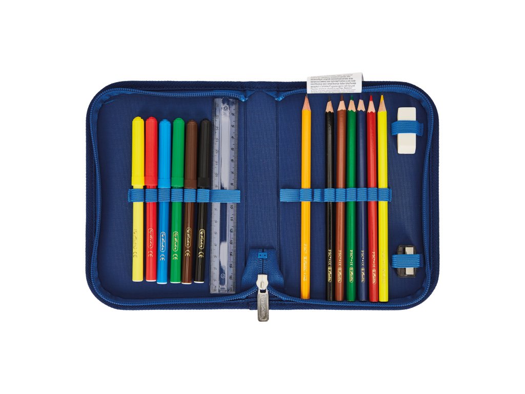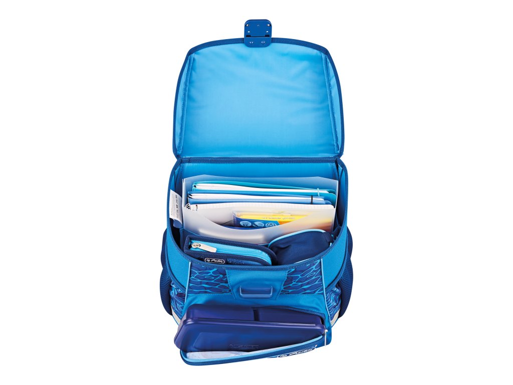 37 x 31 x 22 cm, ergonomicky tvarované a prodyšné polstrování zad, nastavitelné ramenní popruhy, výškově nastavitelný hrudní pás, hlavní kapsa s prostorem pro knihy, boční kapsy s elastickými pásky, přední kapsa na zip, stabilní spodní deska s nožičkami, pohodlná rukojeť, zavírání Click lock s odrazkou, reflexní materiály Oralite. Hmotnost 950 g, objem 15 l, voděodolná, bez PVC. Výbava: penál 16 dílů: 6 fix, 6 pastelek s certifikací FSC, tužka, pravítko, guma, ořezávátko, sáček na cvičky, kulaté pouzdroDoplňkové parametry