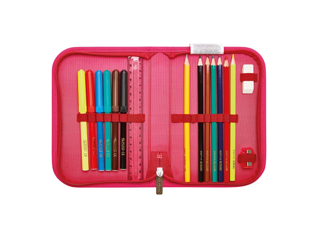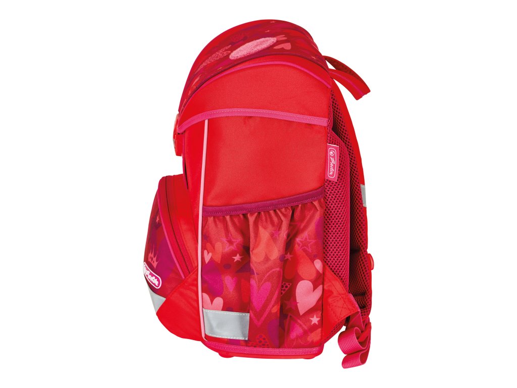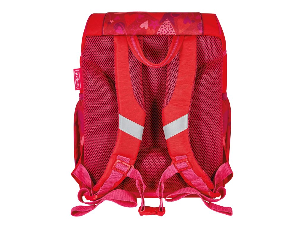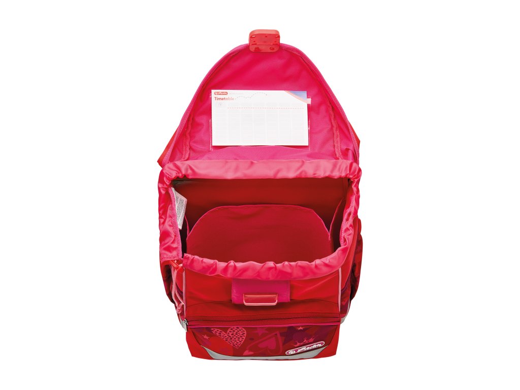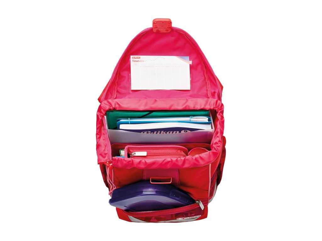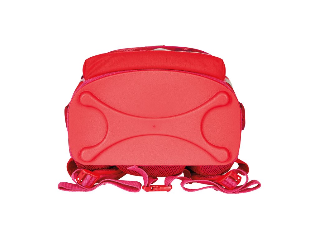 36 x 28 x 21 cm, anatomicky tvarovaná polstrovaná prodyšná záda, široké nastavitelné ramenní popruhy, hrudní popruh, přední kapsa na zip, dvě boční kapsy s elastickými pásky, reflexní pruhy Oralite, 2 odznáčky na suchý zip, stabilní spodní deska s nožičkami, zavírání Click lock s odrazkou, hmotnost 750 g, Objem: 15l, voděodolná, bez PVC, výbava: penál 16 dílů: 6 fix, 6 pastelek, tužka, ořezávátko, guma, pravítko, sáček na cvičky, kulaté pouzdro