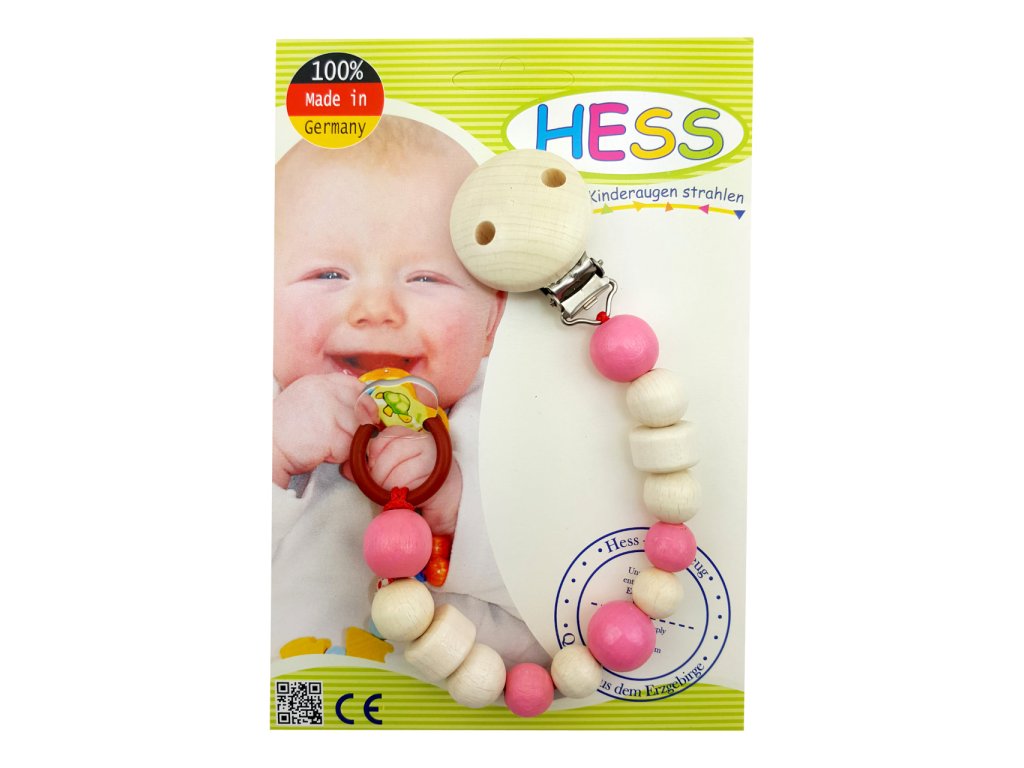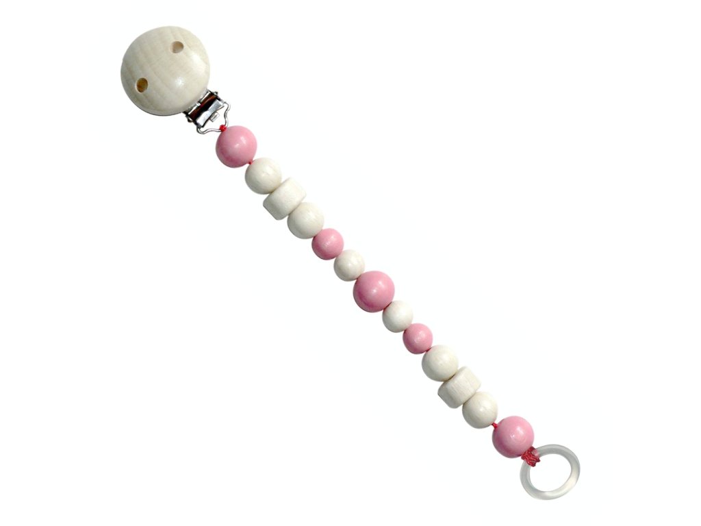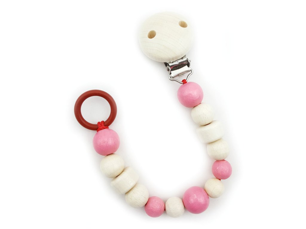 Řetízek opatřený kovovým klipsem a univerzálním pružným silikonovým kroužkem k uchycení dudlíku. Kvalitní povrchová úprava a nezávadné barvy jsou odolné vůči slinám i potu. Je vyroben v Německu, ze dřeva z německých lesů. Hlavní vlastnosti:univerzální silikonový kroužekpraktický kovový klipsodolné a ekologické zpracováníDoplňkové parametry