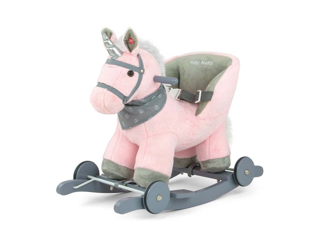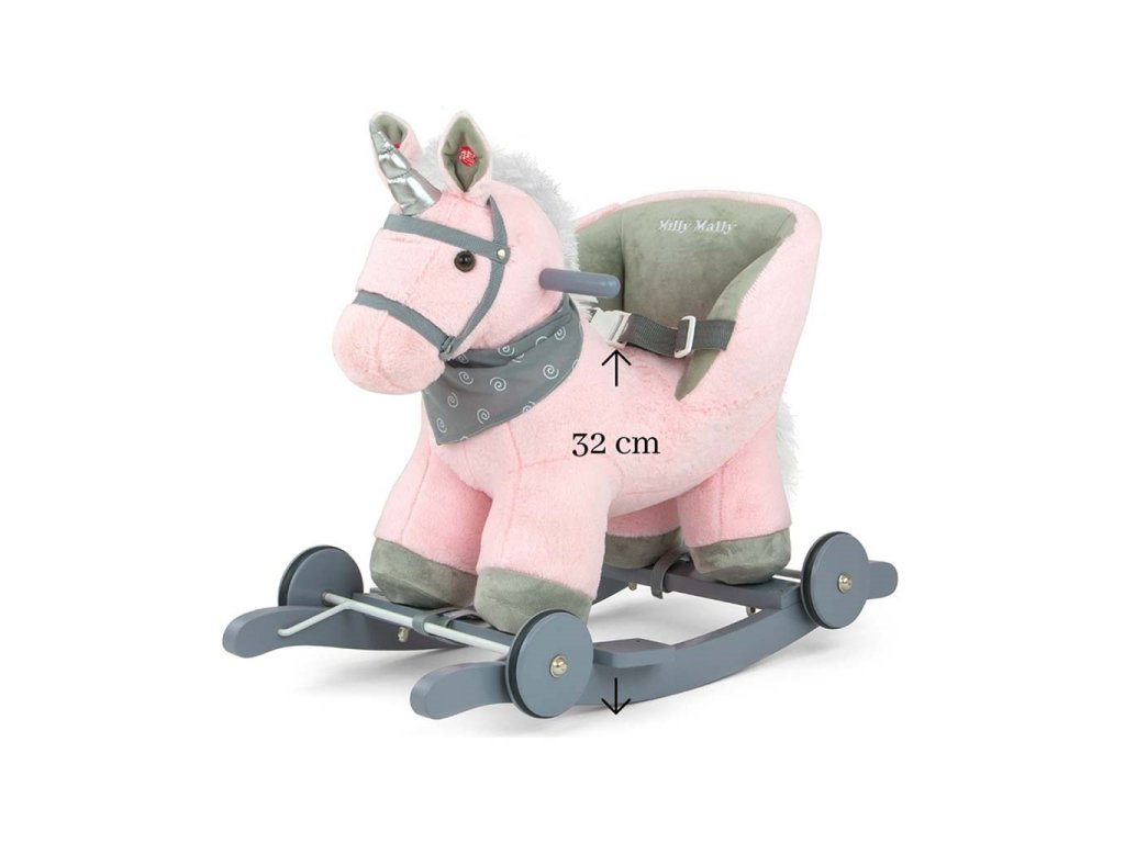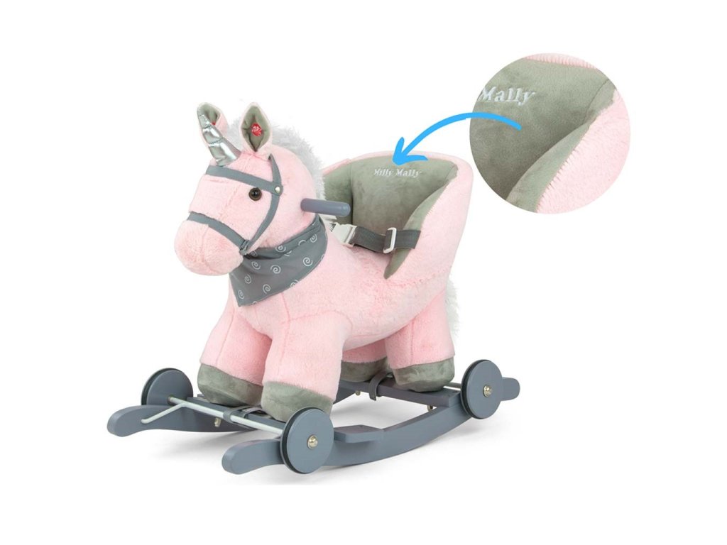 Houpací koník s melodií a kolečky Milly Mally Polly růžový