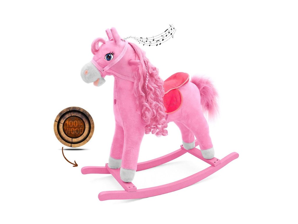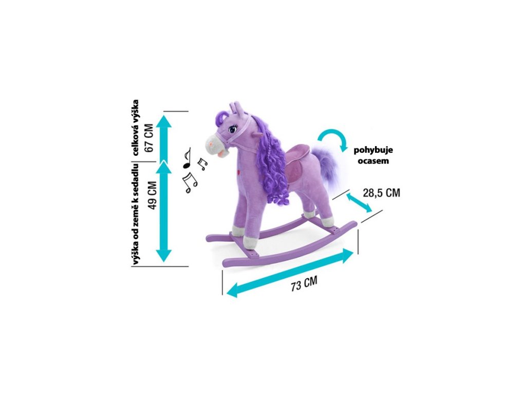 Neobyčejný krásný houpací koník Milly Mally s mnoha vychytávkami. Po zmáčknutí oušek koník pohybuje ocáskem i tlamičkou a vydává zvuky. Je vyroben z měkkého plyšového materiálu, díky čemuž si Vaše dítě může dlouho užívat skvělou zábavu. Hračka má sedlo a dřevěné rukojeti. Koníka lze z houpacího rámu sundat a použít jako samostatnou plyšovou hračku. Je balen samostatně v krabici, která může být použitá i jako dárkové balení.