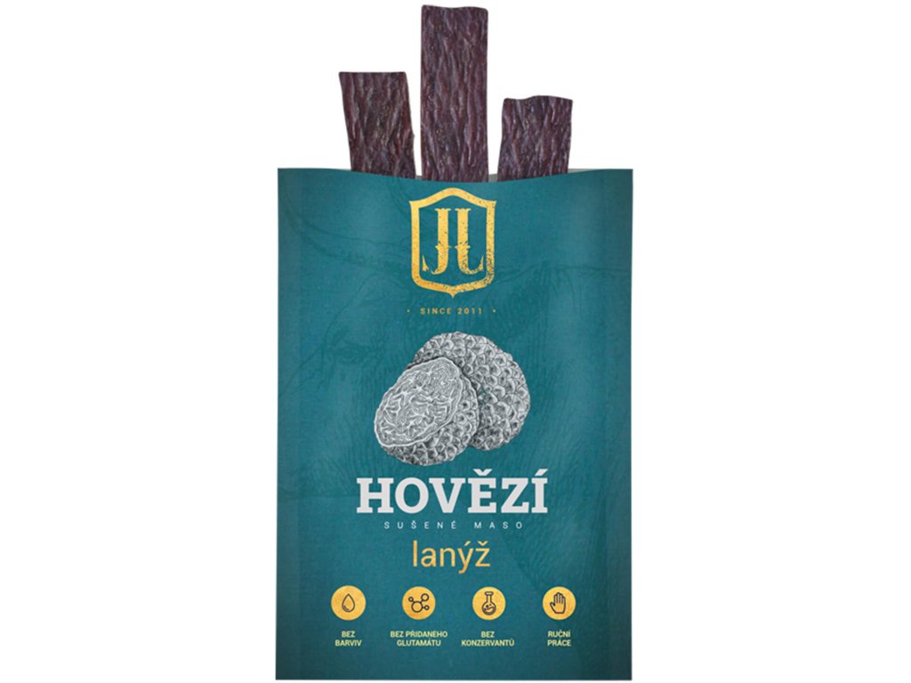 Jihočeské Jerky Hovězí Lanýž je prémiový snack, který spojuje sílu poctivého hovězího masa s noblesní chutí lanýže. Sušení probíhá tradiční metodou, díky níž si maso zachovává svou přirozenou šťavnatost, strukturu i výraznou chuť.