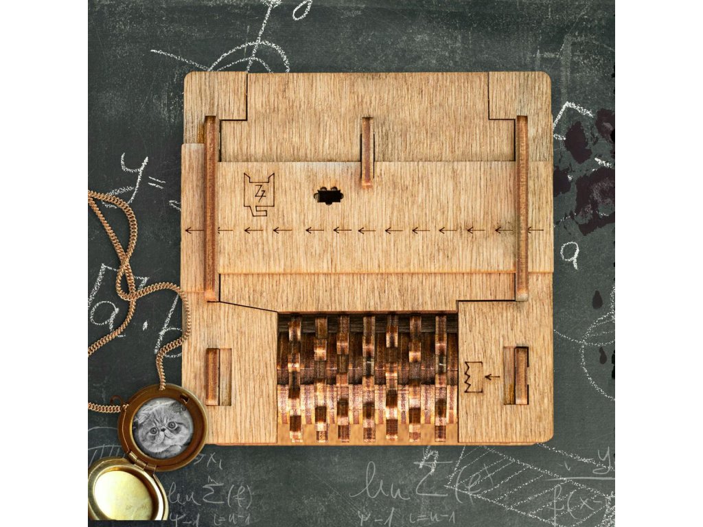 Už žádný nudný balící papír! Věnujte dárek s překvapením a zažijte strhující zábavu Chcete darovat peníze, šperk nebo jiný drobný dárek? A chcete předat dárek skutečně originálním způsobem? Spojte překvapení se zkouškou důmyslu a trpělivosti. S hlavolamem v inovativním designu vyrobeným z březového dřeva neuděláte chybu. Nenechte si ujít vzrušující zážitek ze hry. A nemusíte si hrát sami, zapojte celou rodinu nebo přátele. Hlavolam je pečlivě vyroben z přírodního materiálu a všechny jeho části byly přesně vyřezány nejlepší laserovou technologií. Příběh:Schrödingerova kočka je myšlenkový experiment rakouského fyzika Erwina Schrödingera, který ilustruje problémy kvantové mechaniky v každodenních předmětech. V tomto experimentu jsou kočka a nějaký jed uzamčeny v uzavřené krabici. Kvantová mechanika říká, že po chvíli bude kočka mrtvá i živá. Bohužel Schrödinger kvůli své zaneprázdněnosti na kočku úplně zapomněl.Jsme si jisti, že kočka stále žije a musíte ji zachránit! Hlavní vlastnosti: 52 dílkůdoba hry 45-60 minutvyrobeno z vysoce kvalitního březového dřevapro 1-2 hráčetajný prostor uvnitřkreativní dárkové balení pro malý dárekopakované použitívhodné od 14 let Jak hrát:Krok 1Řešte úkoly jeden po druhém, dokud neodhalíte tajný prostor. Krok 2Pokud si nebudete vědět rady, podívejte se na tuto webovou stránku. Krok 3Na konci dobrodružství na vás bude čekat překvapení a možnost zvěčnit své jméno na zdi slávy. Krok 4Po otevření hlavolam můžete znovu zavřít a předat dál, ať si zábavu užijí i ostatní. VAROVÁNÍ! Níže uvedená videa obsahují spoilery řešení! Prosím, sledujte pouze první 2 minuty, pokud si chcete užít hádanku a vyřešit hlavolam sami.Doplňkové parametry